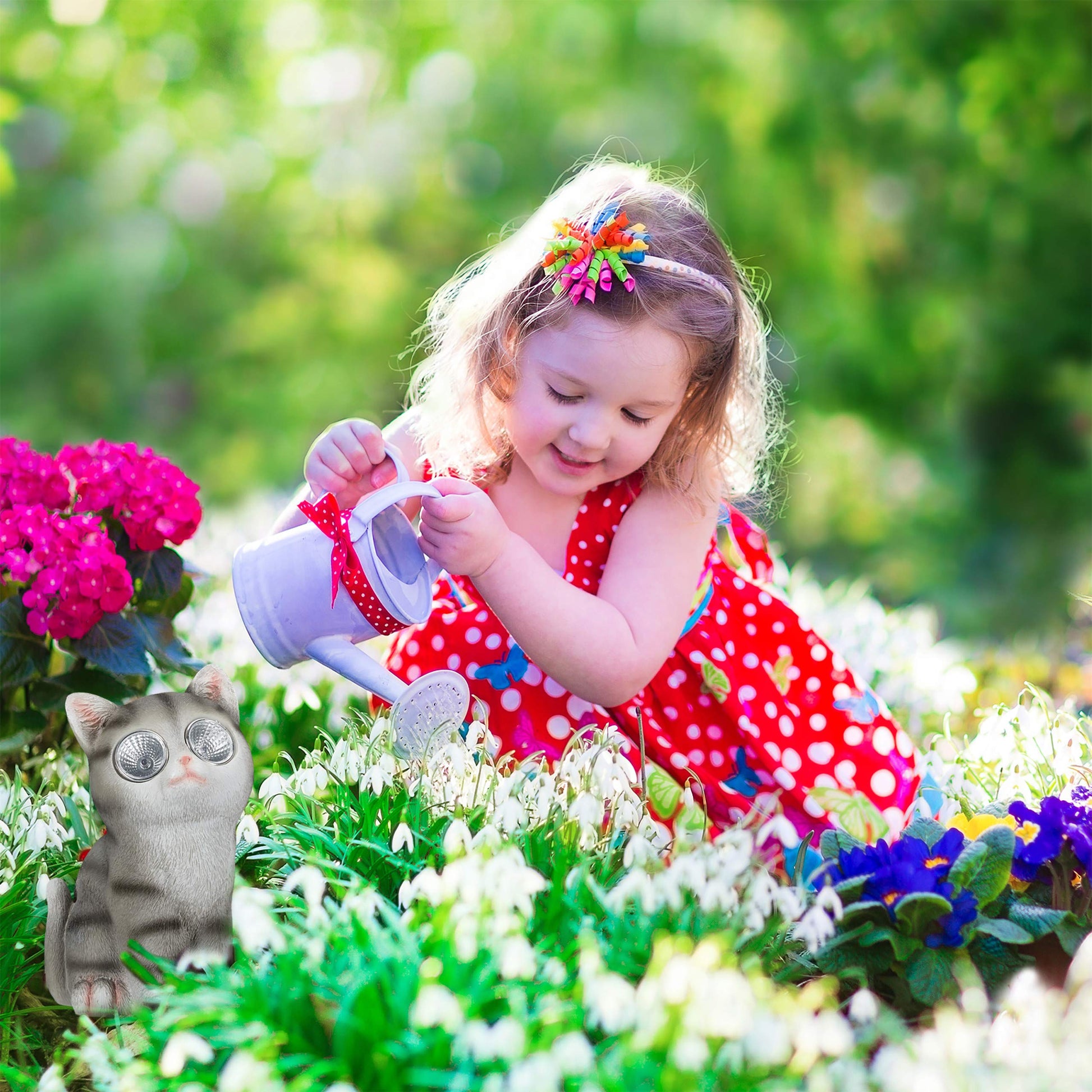 ["4-piece set: 4x charming cat figurine for garden, terrace, and balcony - Animal garden decoration with light","Illuminating: Decorative figurine with solar eyes - Up to 8 hours of glowing LEDs - Solar panel with light switch","Weatherproof: Water-resistant solar cat made of sturdy resin - Perfect for outdoor use","Adorable: Detailed animal figurine with a mischievous spirit - Sitting kitten adorns flowerbeds and front yards","Charming: Funny solar light for atmospheric evenings - Gift idea for animal and garden lovers"]