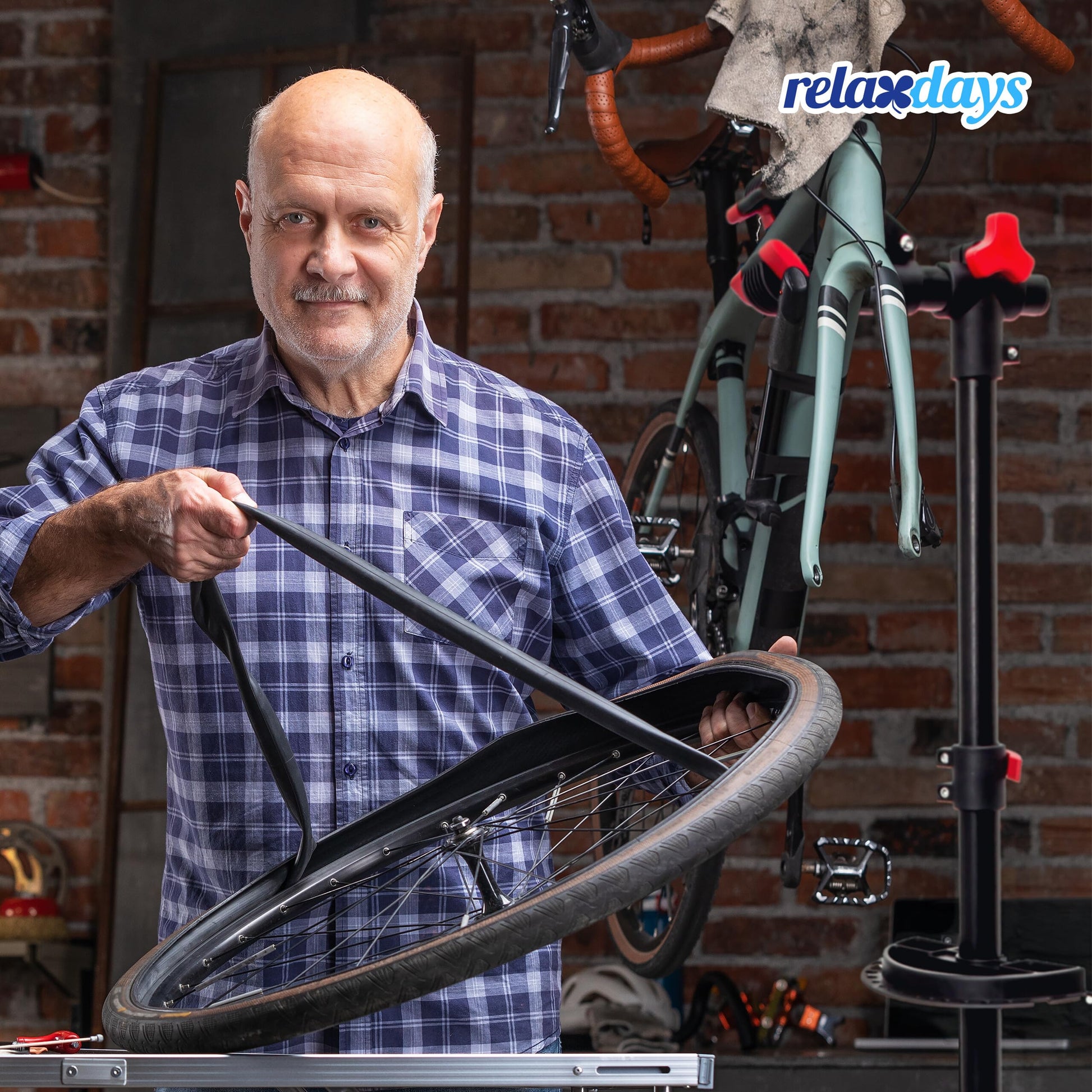 Relaxdays bike repair stand with tool tray - foldable & adjustable height - black four-legged stable stand - steel powder coated, 10017183, STANDARD