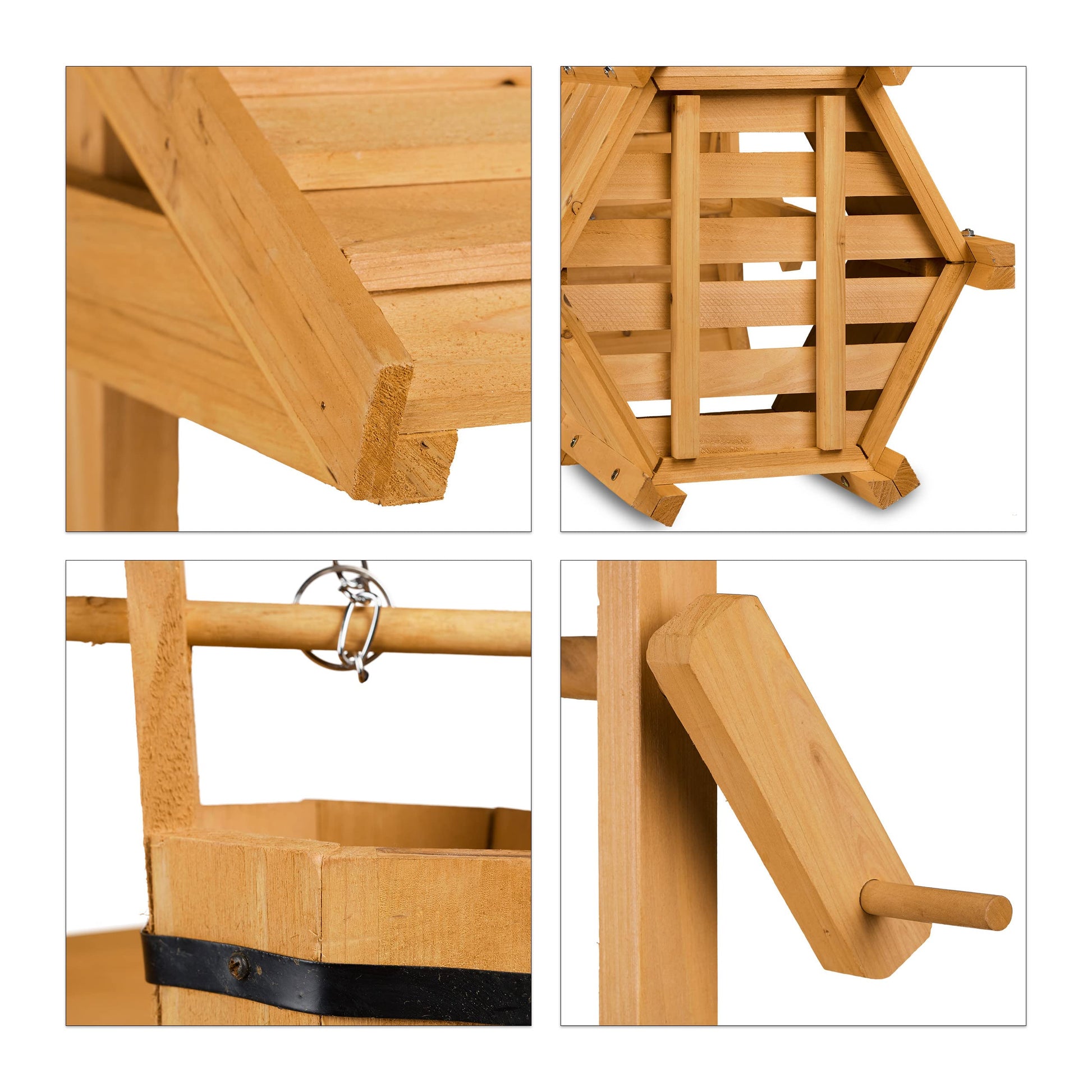 Relaxdays decorative fountain for garden made of wood, with rolling bucket design, dimensions HxWxD: 82 x 47 x 41 cm, ornamental fountain, garden decoration, wooden fountain, natural.