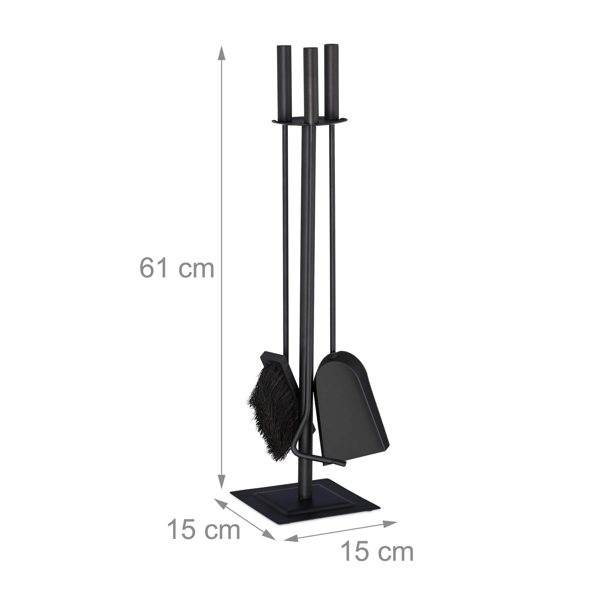 Relaxdays fireplace tool set, 4-piece fireplace equipment with shovel, broom, poker & stand, modern stove tools, black, 61 x 15 x 15 cm