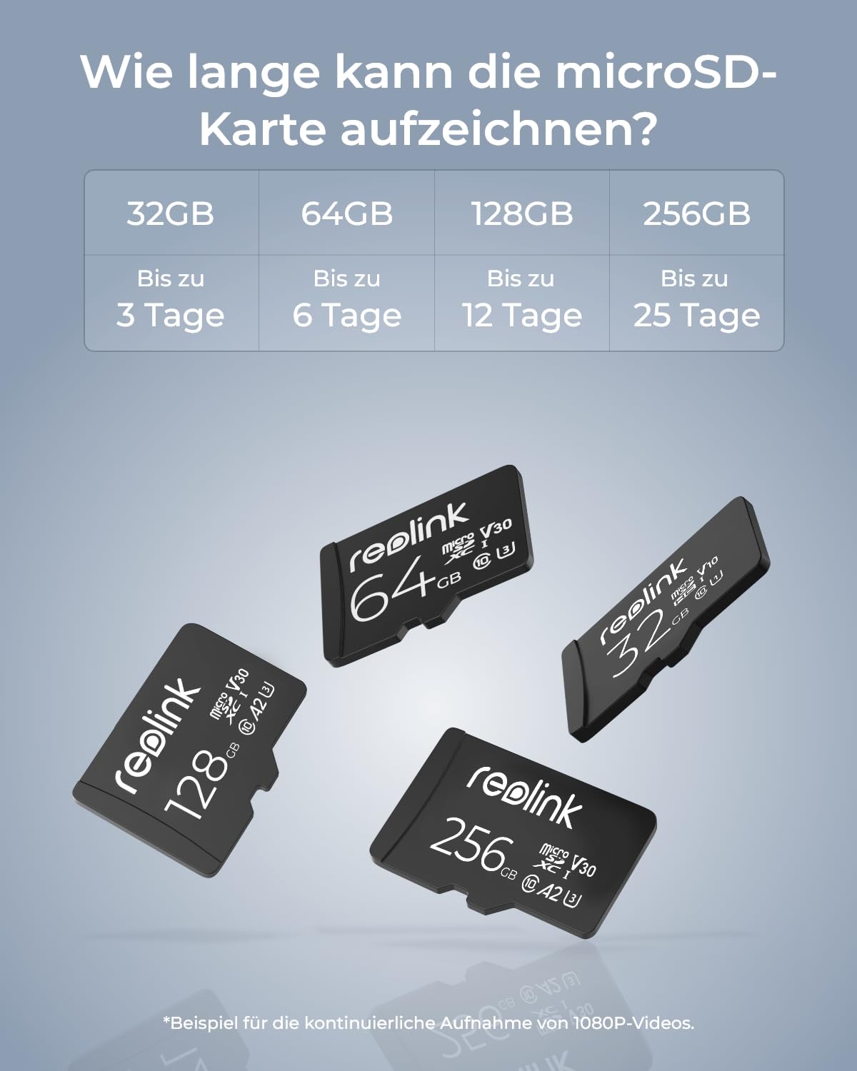 Reolink 128GB microSDXC memory card, Class 10, A2, V30, U3 TF card, compatible with surveillance camera, also for smartphone, action camera or drones, up to 100MB/s