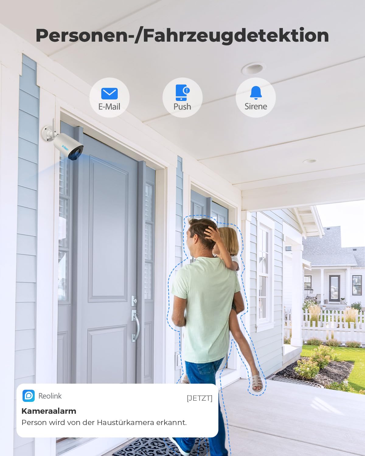 "Intelligent Detection: Accurately distinguish between people, vehicles, pets, and other objects with advanced technology, reducing false alarms. With various real-time alerts (push, email, siren), you won't miss any important events.",