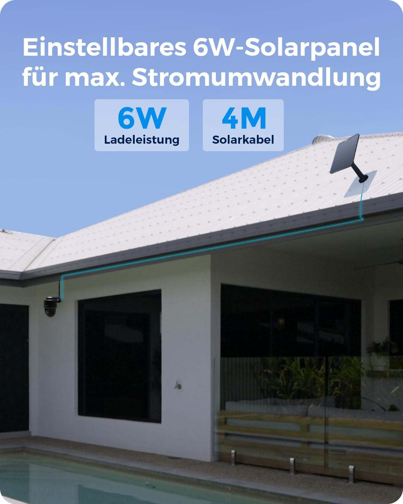 100% WIRE-FREE + 2.4/5GHZ WI-FI: This Solar outdoor WiFi camera operates on 2.4/5GHz Wi-Fi and is continuously powered by the new 6W solar panel. With this easy-to-install camera, you can set up your own security system in just a few minutes.