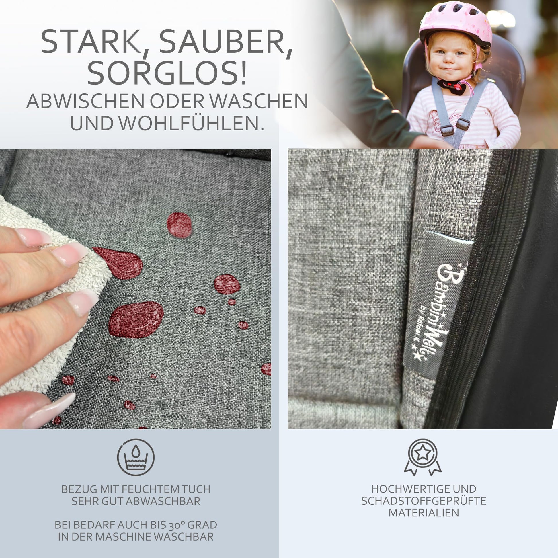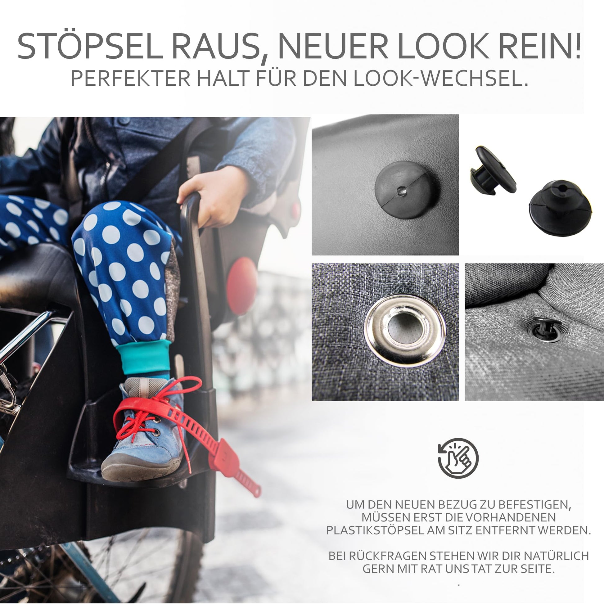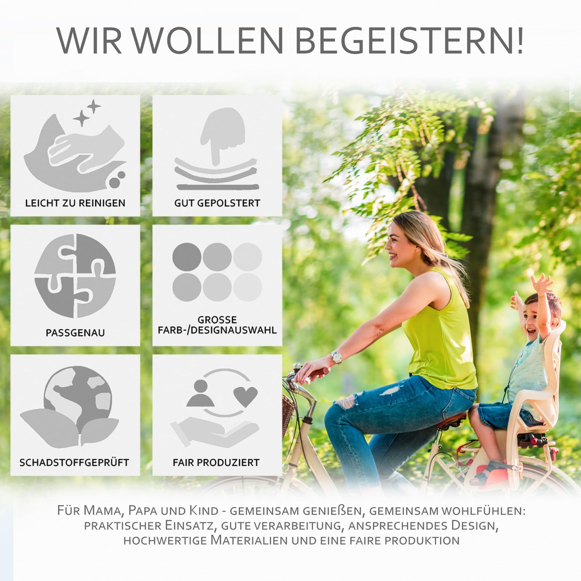 "Your old bicycle seat cover doesn't look nice anymore? Our BambiniWelt replacement cover is compatible with Römer bicycle seats and made of durable, water-repellent material"