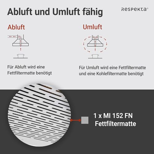 ["UNDER CABINET HOOD: The under cabinet range hood quickly and effectively absorbs fumes & odors. Thanks to its slim design, the range hood fits flat and space-saving in any kitchen","FEATURES: The 3 power levels of the built-in hood can be easily controlled with the slide switch. The exhaust hood ensures an optimal cooking experience thanks to the LED lighting","SPECIFICATIONS: The practical range hood is flat & slim with dimensions of 7.6 x 50 x 47cm and weighs 4.1 kg - making it ideal for installation or under mounting","INSTALLATION: The kitchen hood can be installed space-savingly and operated with the 155 cm long cable. In addition, a 125 cm duct connection is provided for exhaust operation","ACCESSORIES: In addition to the stainless steel look range hood, a washable metal grease filter (MI 152 FN) is included in the delivery. The grease filter collects cooking grease and is removable","Please note the following calculation formula: m² of the kitchen x kitchen height (in m) x 10 (air changes per hour) = required air flow rate of the range hood (m³)"]