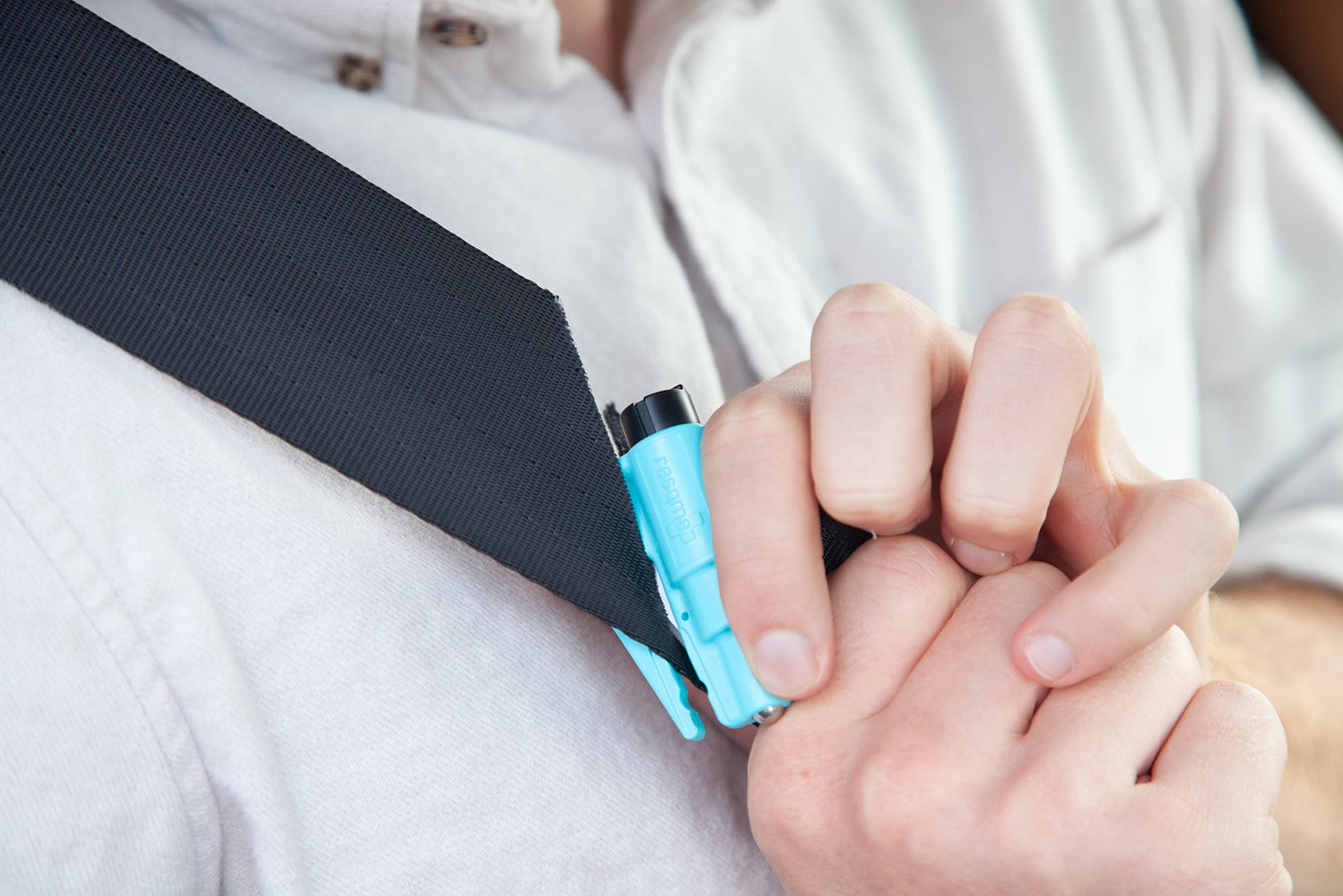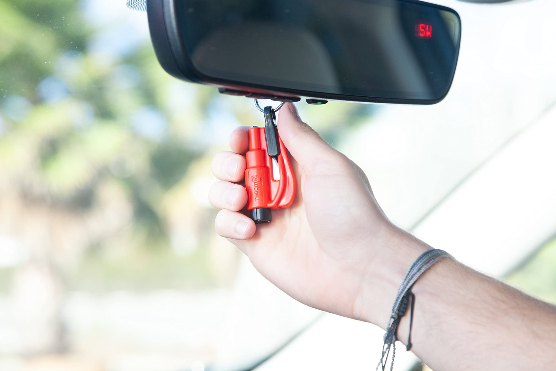 "The original compact 2-in-1 emergency car safety tool: This emergency hammer for keychains gives you peace of mind on the road. Can be used in various situations such as rollovers, electrical system failure, car fires, flooding, or in case of vehicle submersion. Seatbelt cutter for jammed seatbelts: The sharp stainless steel blade makes cutting through a jammed seatbelt quick and easy. Cut the seatbelt diagonally for a fast, clean cut. Can be used multiple times. Window breaker made of tempered glass: The strong, sturdy stainless steel tip easily breaks tempered auto glass side windows. Preferably press on one of the corners of the window for better results. The resqme is equipped with a spring-loaded mechanism and resets itself after each use. The resqme is reusable multiple times. Manufactured in the USA. For 20 years, we have proudly offered effective and reliable safety tools made in the USA. Approved by first responders, law enforcement, and paramedics and valued by over 10 million drivers worldwide. The resqme seatbelt cutter and window breaker saves an average of one life every 15 days. Tested and certified by TÜV, German approval."