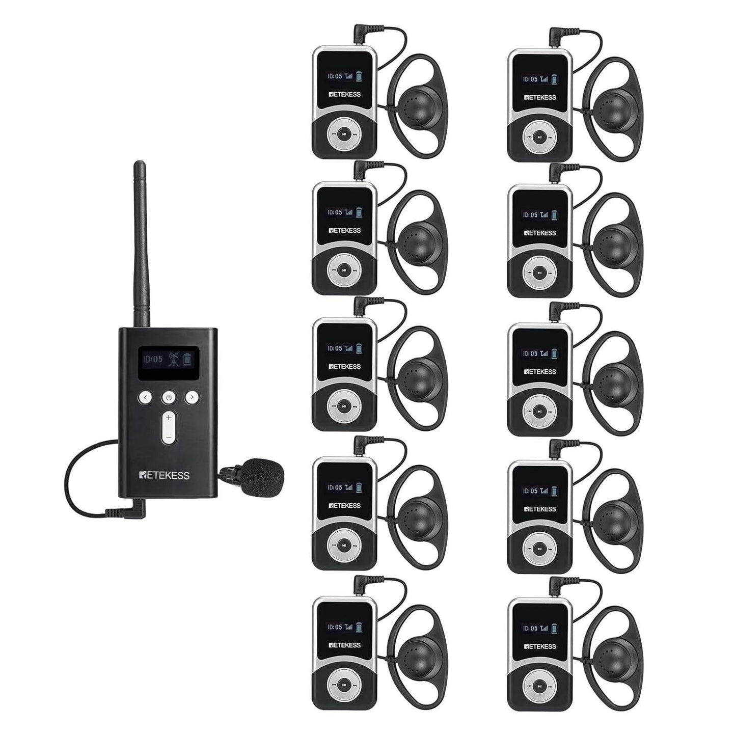 Retekess T130S (T130 2rd) Wireless Tour Guide System, Wireless Tour Guide System, D-Headphones, 100m, Interpreter Equipment for Tourism, Factory Tours, School (1 Transmitter, 10 Receivers)