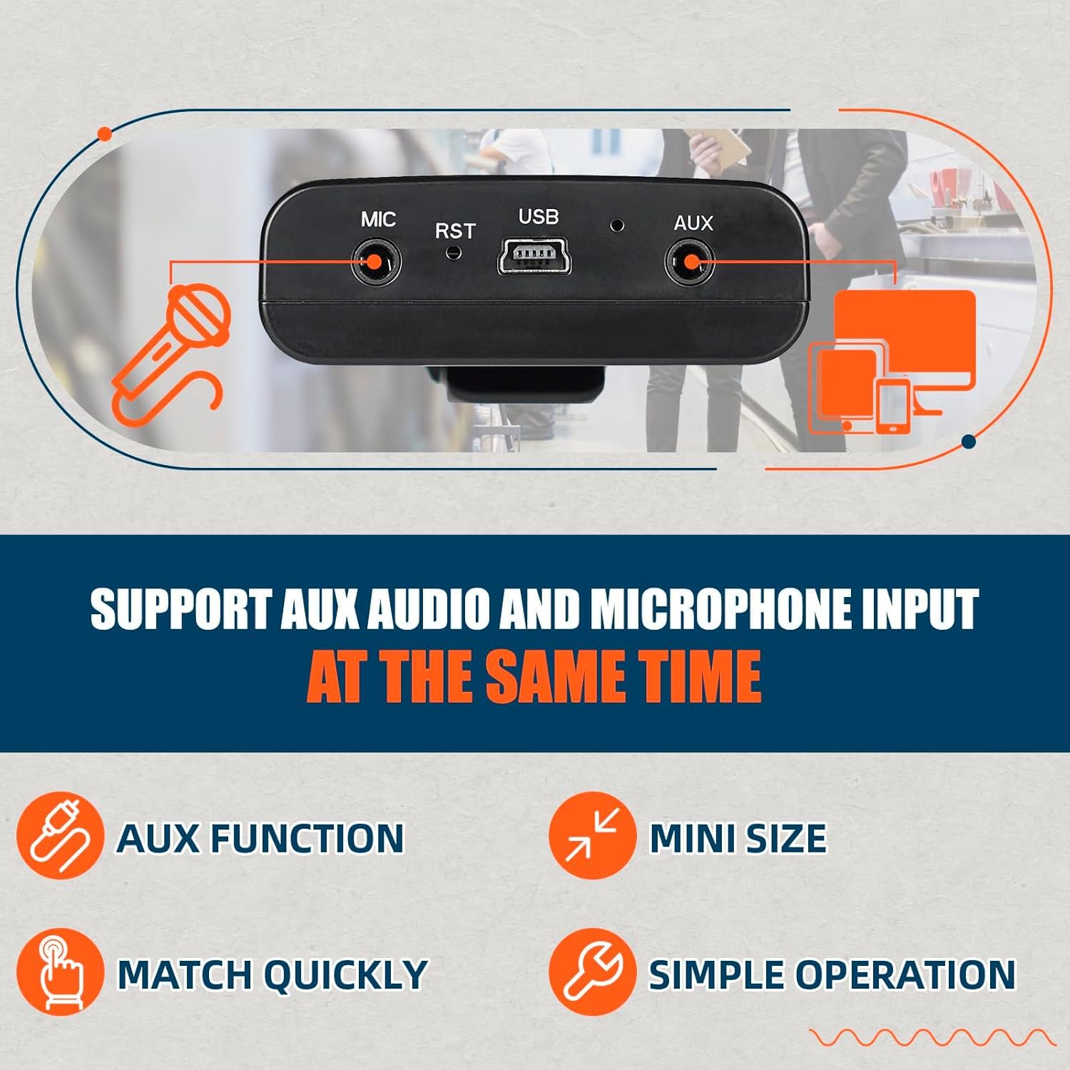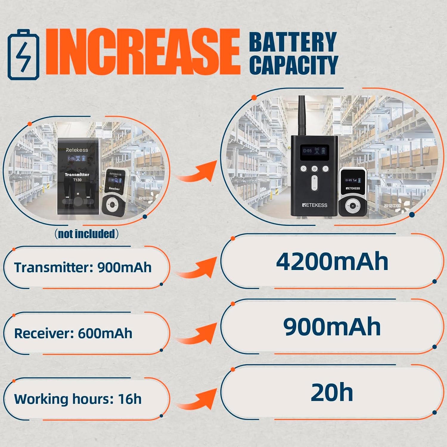 ["Longer transmission range; range up to 100 m in outdoor areas; receivers do not need to be grouped around the transmitter; important information is clearly understandable","Longer lifespan; sender battery capacity is 4200 mAh, receiver is 900 mAh; operating time is 20 hours; sufficient for long-term use","Whisper tour guide system upgrade; D-shaped headphone attachment; universal headphone for left and right ear; relieves pain from prolonged wearing on one ear; meets the needs of people with disabilities","49 optional channels; allows 49 groups to work simultaneously in the same location within range; use the audio system in loud environments; no worries about interference from other teams","PLL synthesis design; with high frequency stability; works flawlessly and virtually interruption-free; no interruptions or compromise in sound quality; no more shouting; audible to all","The radio transmitter can be worn in two ways: around the neck with the included strap or on the belt with a clip. The receiver can be worn on a neck strap or in a pocket. Thanks to the hands-free function, you have hands-free and reduced risk of dropping the device","The T130S radio receiver has volume up and down buttons. Listeners can adjust the volume to their hearing. No worries if you have an older or hearing-impaired person in your group: with the 10-level volume, listening is comfortable for everyone","Turn off all receivers with one click. The tour guide only needs to hold down the button on the transmitter for about 5 seconds. All receivers on the same channel will be turned off. This saves time","Headphones for tour guides; widely used in factory tours, tourism, conferences, churches, training, and schools"]