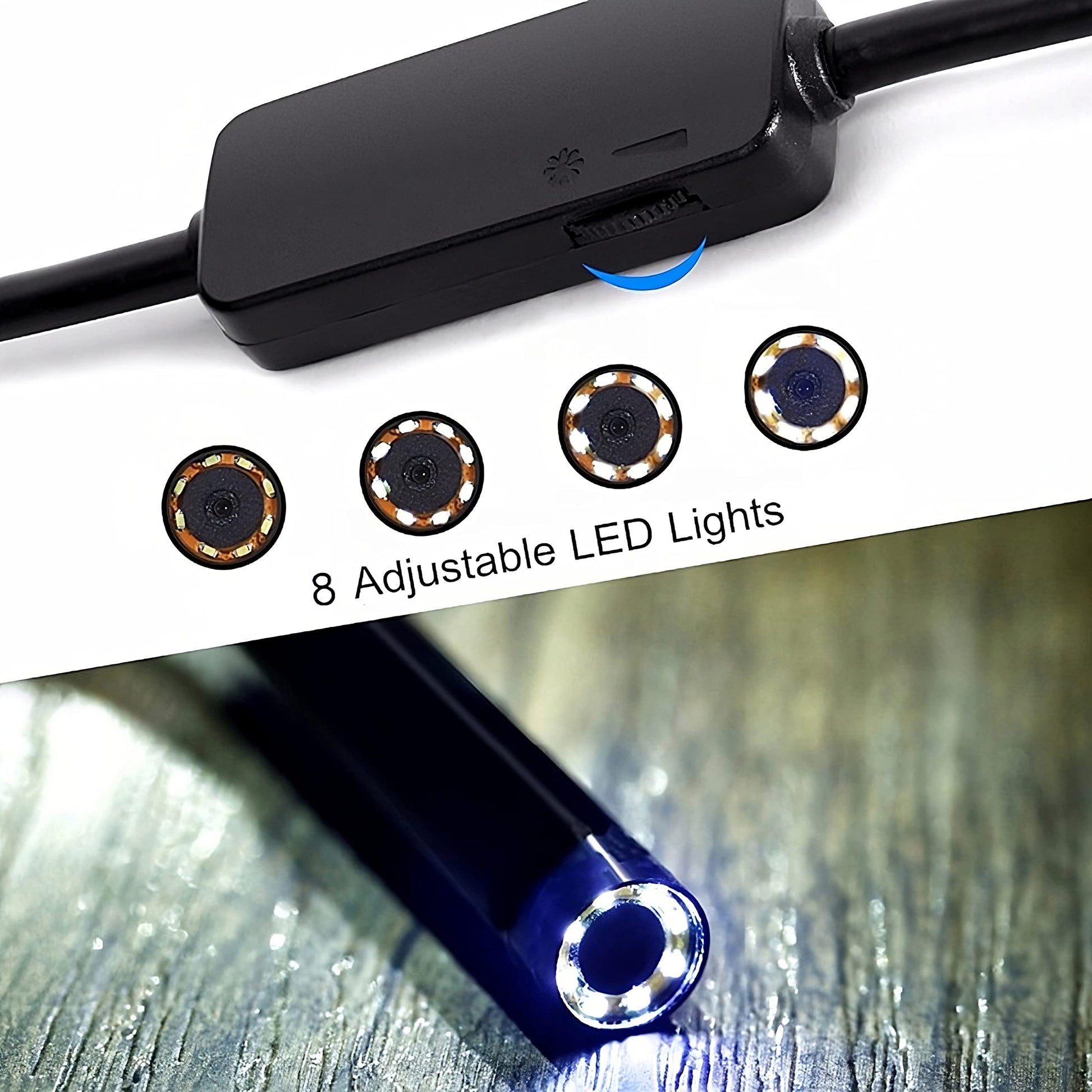 "Professional WiFi Camera - This industrial endoscope camera is equipped with a high-quality WiFi transmitter, allowing you to wirelessly send a crystal clear and sharp image to your smartphone display. Thanks to the high resolution, you can easily capture any irregularities in the inspected area. You can receive the image with any phone or other device with OS, Android, or Windows.