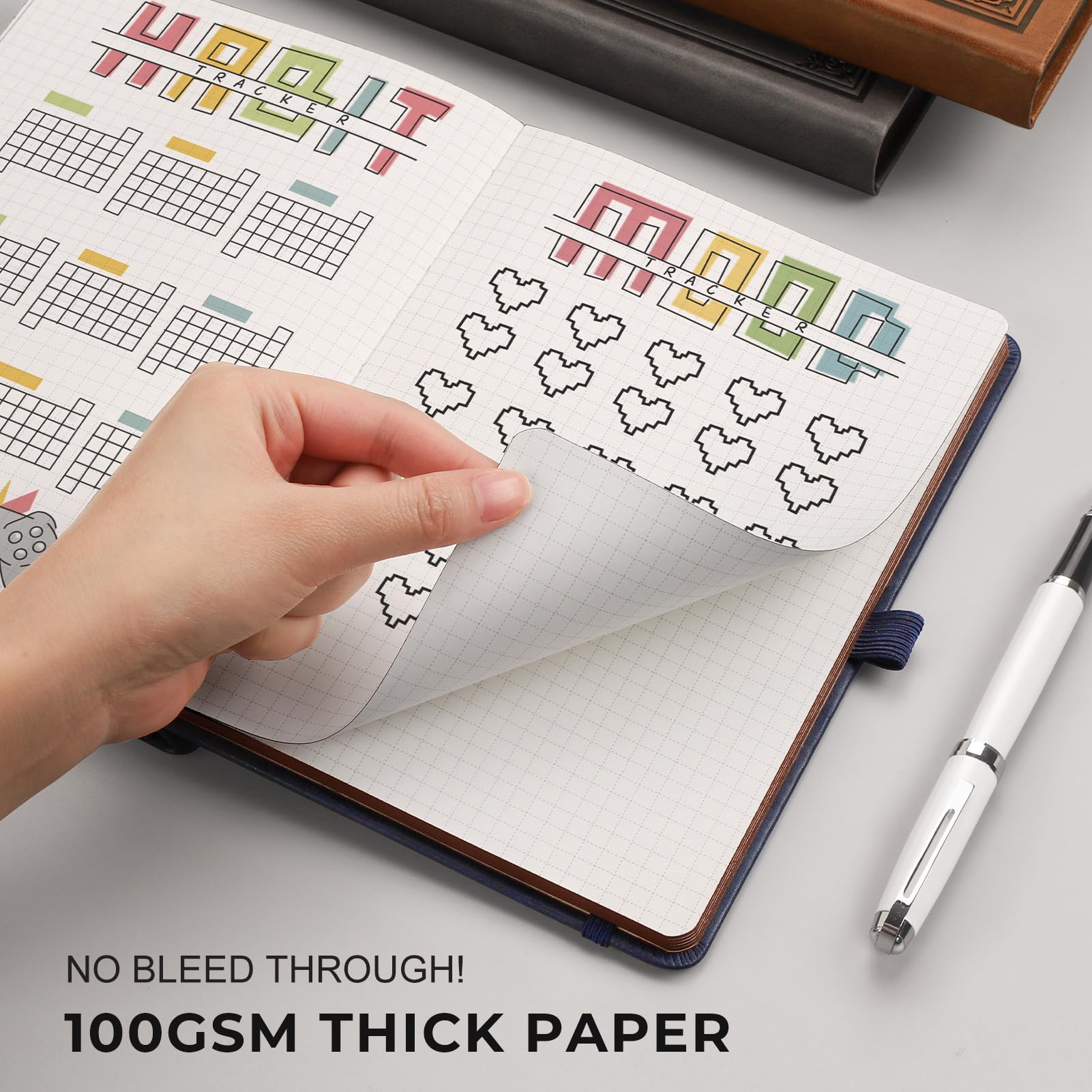 RETTACY A5 Checkered Notebook, Thick Grid Journal, Leather Hardcover 320 Pages, 100gsm Checkered Paper, Inner Pocket, for Office School Work Women Men, 14.5 x 21cm-Blue
