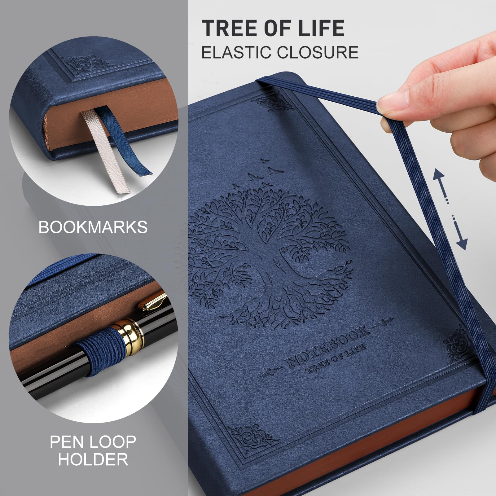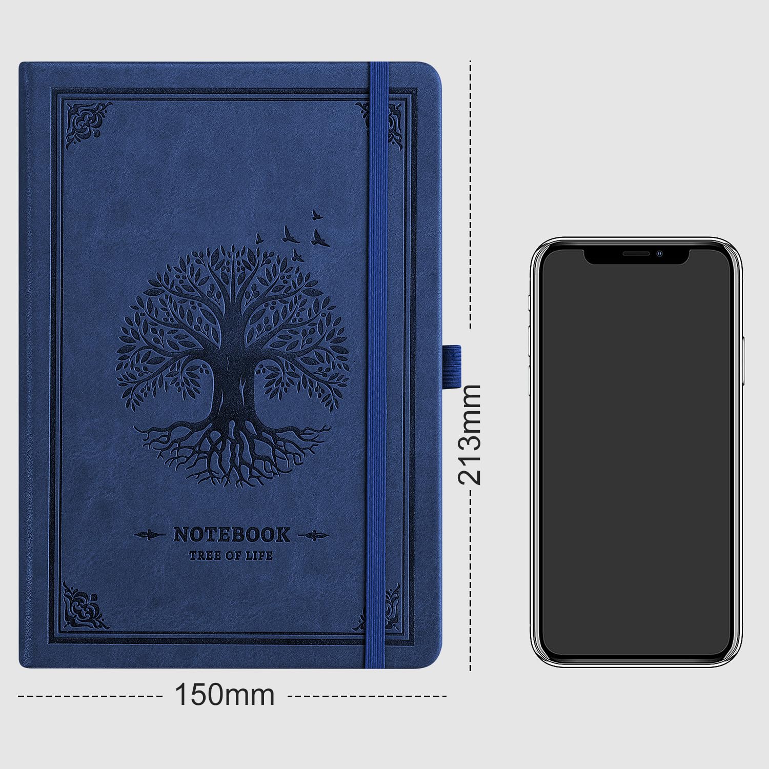 "Cover made of vintage PU leather: The cover is uniquely embossed to create a raised texture that gives the inspiring tree motif an authentic touch. The sturdy hardcover not only exudes stylish glamour but also provides sturdy protection for the flawless pages, ensuring a comfortable and luxurious writing experience."