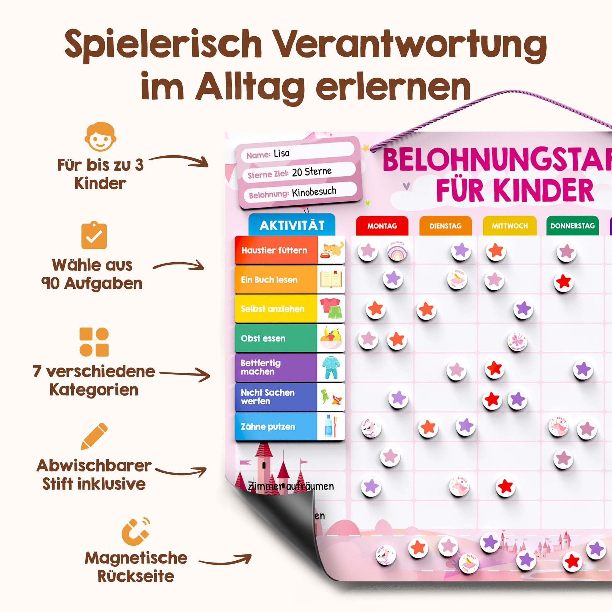 "GIFT IDEA FOR STARTING SCHOOL: Matching the start of school, this reward board for children is the ideal gift. The reward system helps children understand rules and structures and become more independent."