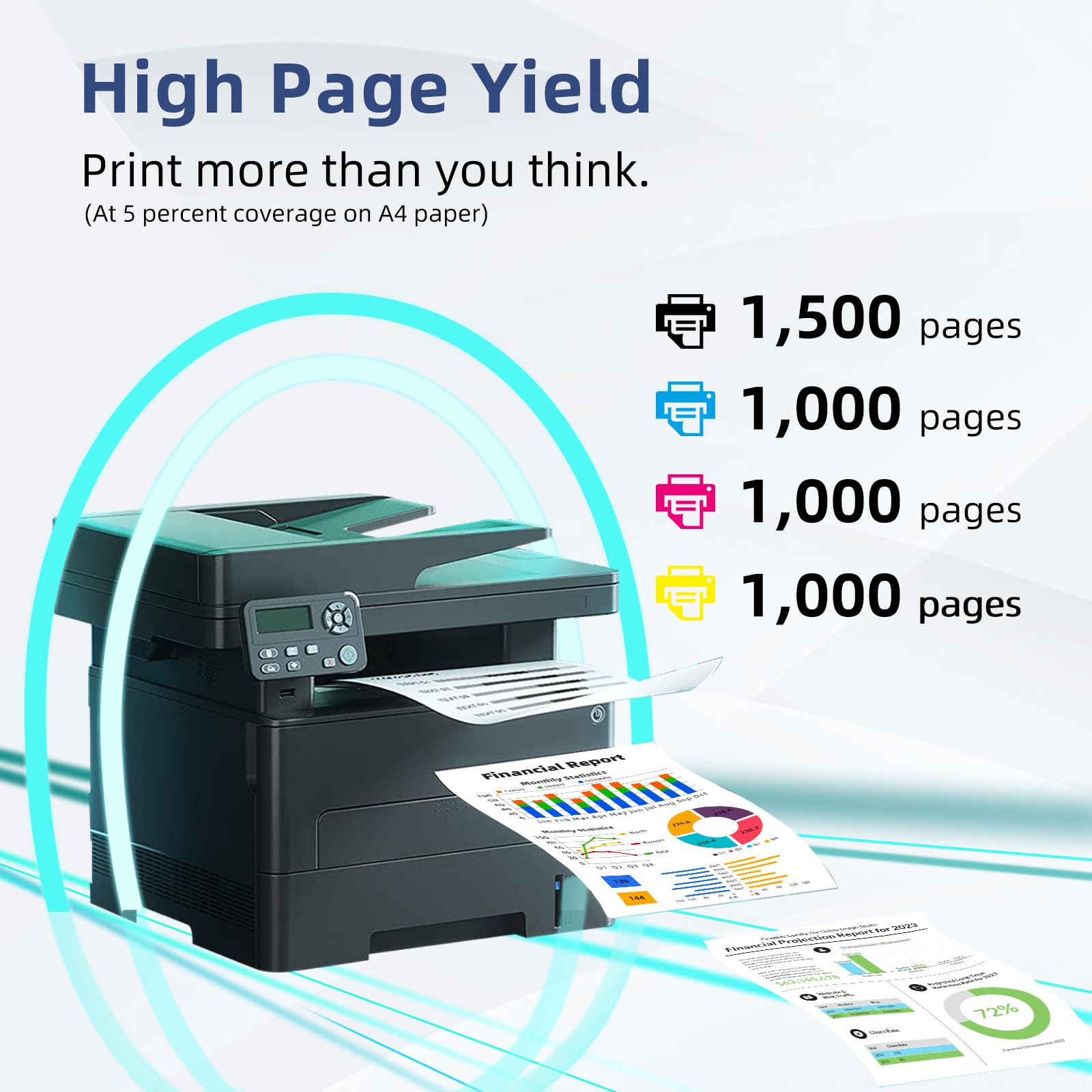 "High performance: The RGiNK P404C Toner uses an intelligent chip with fast recognition, monitoring ink levels in real time to deliver crisp text and vibrant print colors."