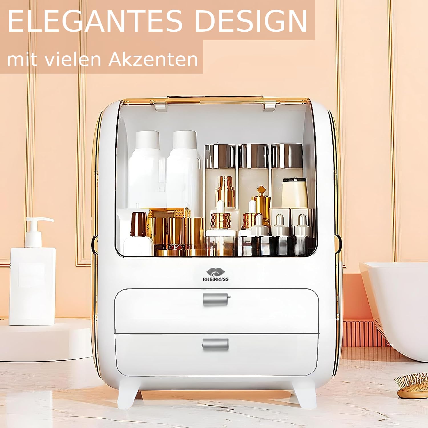 Rhinekiss Makeup Organizer with Drawers, waterproof & dustproof, Cosmetic Organizer Vanity Makeup Storage Bathroom Makeup Perfume Nail Polish Beauty Accessories Bathroom Organize.