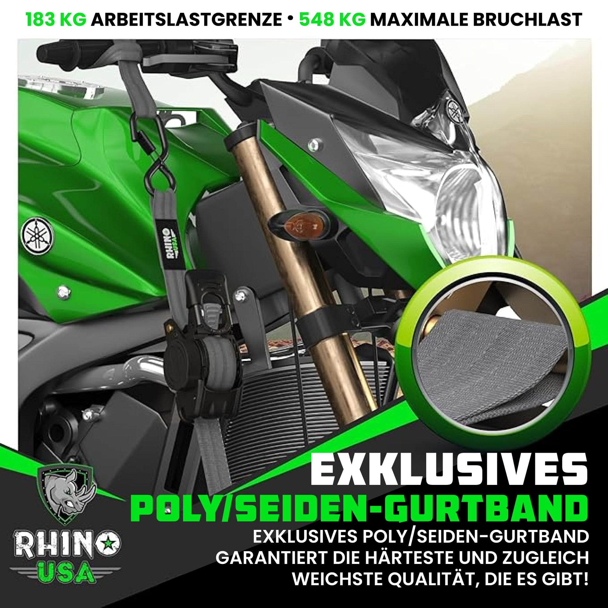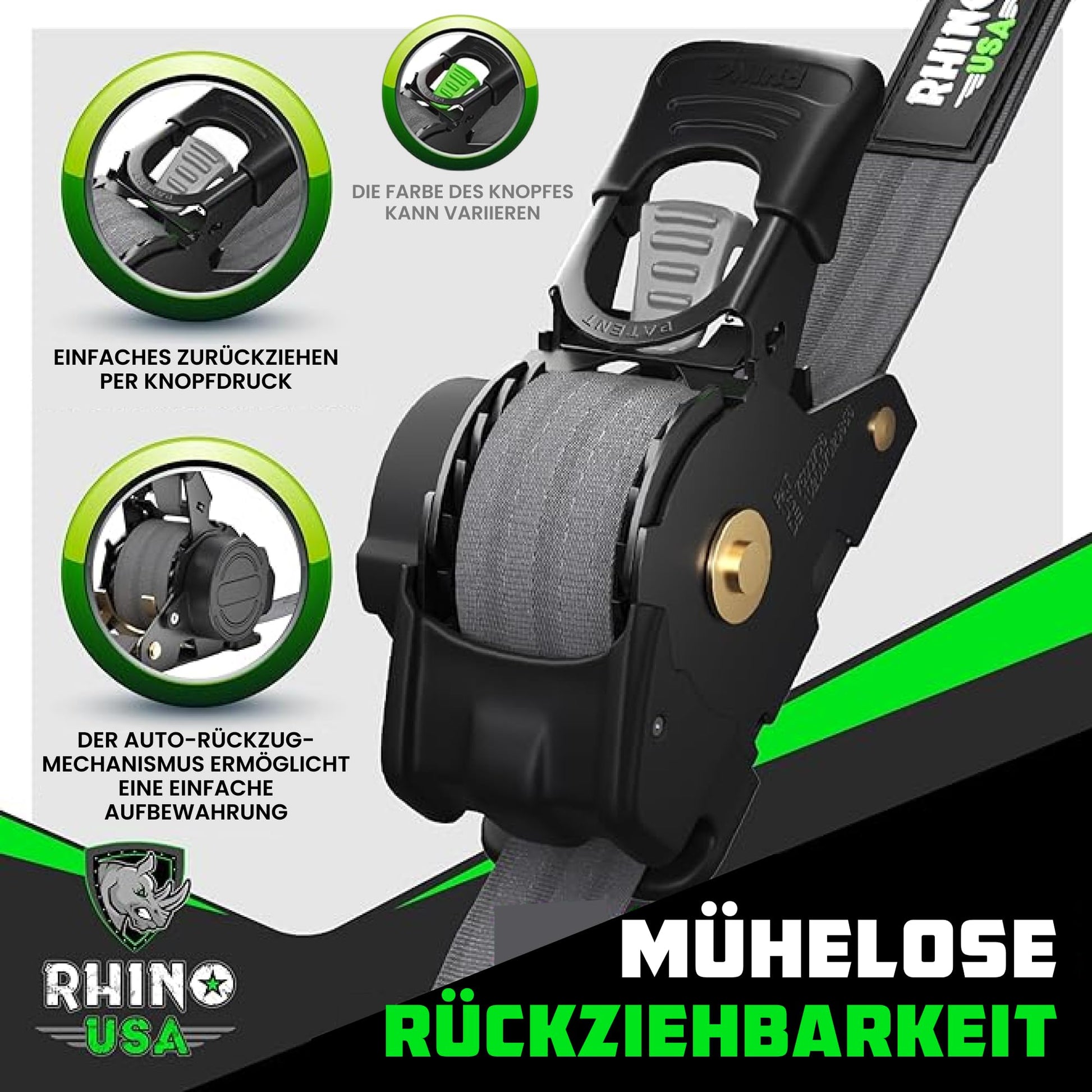 Rhino USA Self-Retracting Ratchet Straps (4-Pack) - 1" x 10' (1,200 lbs Breaking Strength) - Heavy Duty Automatic Ratchet Straps for Trucks, Trailers, Motorcycle, Bike & More - Gray