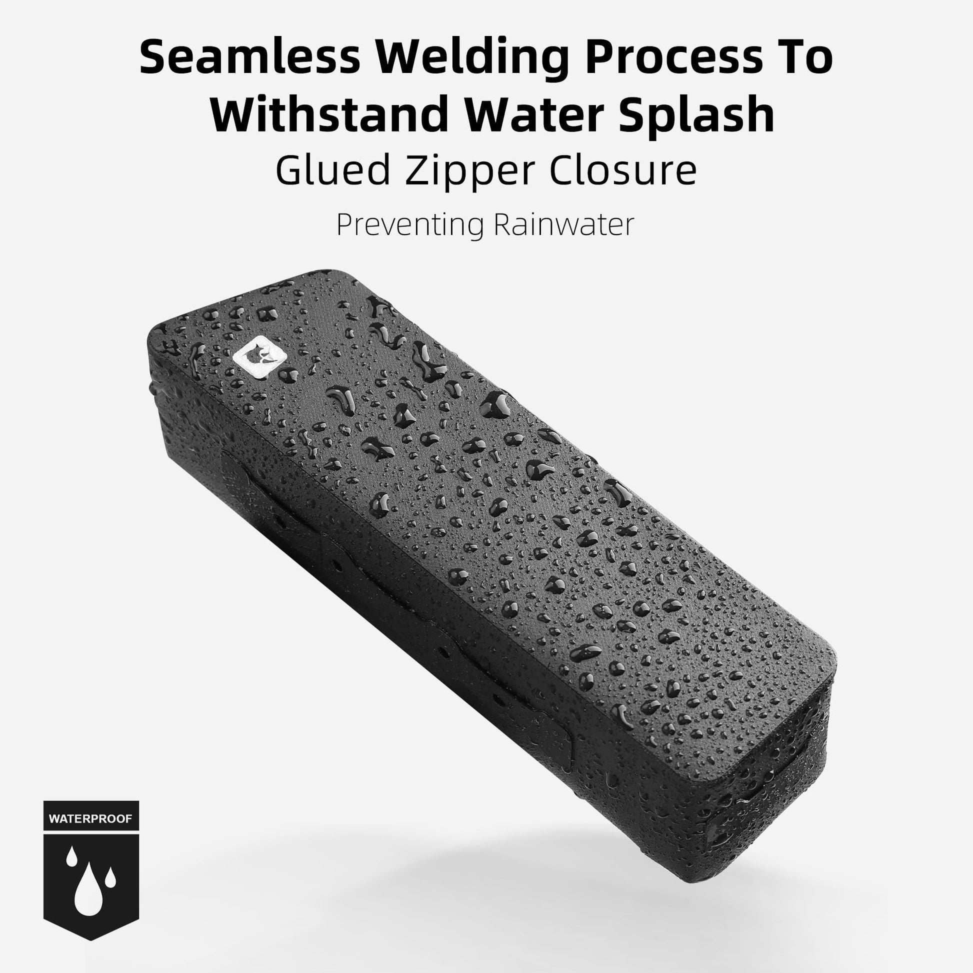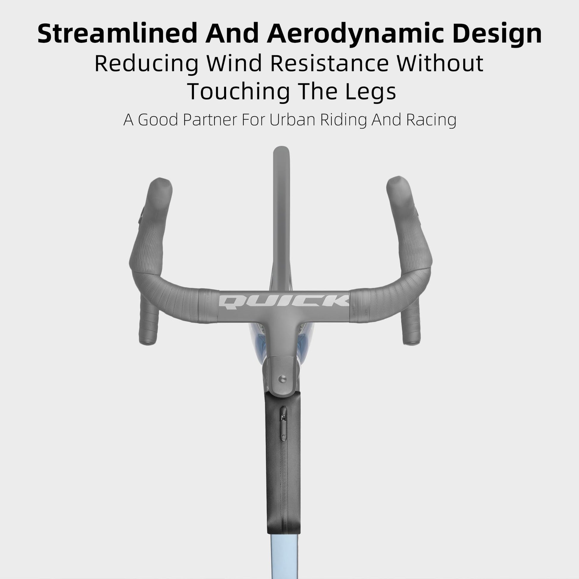 "Seamless welding and waterproof TPU material to prevent rainwater infiltration. A great partner for urban riding and racing. Size: 22*5.5*5.8 cm. Support board makes the bag firmer and more stable, protecting items from damage. Windbreaking design that doesn't touch the legs when the bike swings and reduces wind resistance. Two installation methods, screws and Velcro straps, depending on different bike frames. Hole diameter is 5 mm and suitable for M5 screws. Accessories: Bag*1, Velcro straps*3, screws*4, spacers*8."