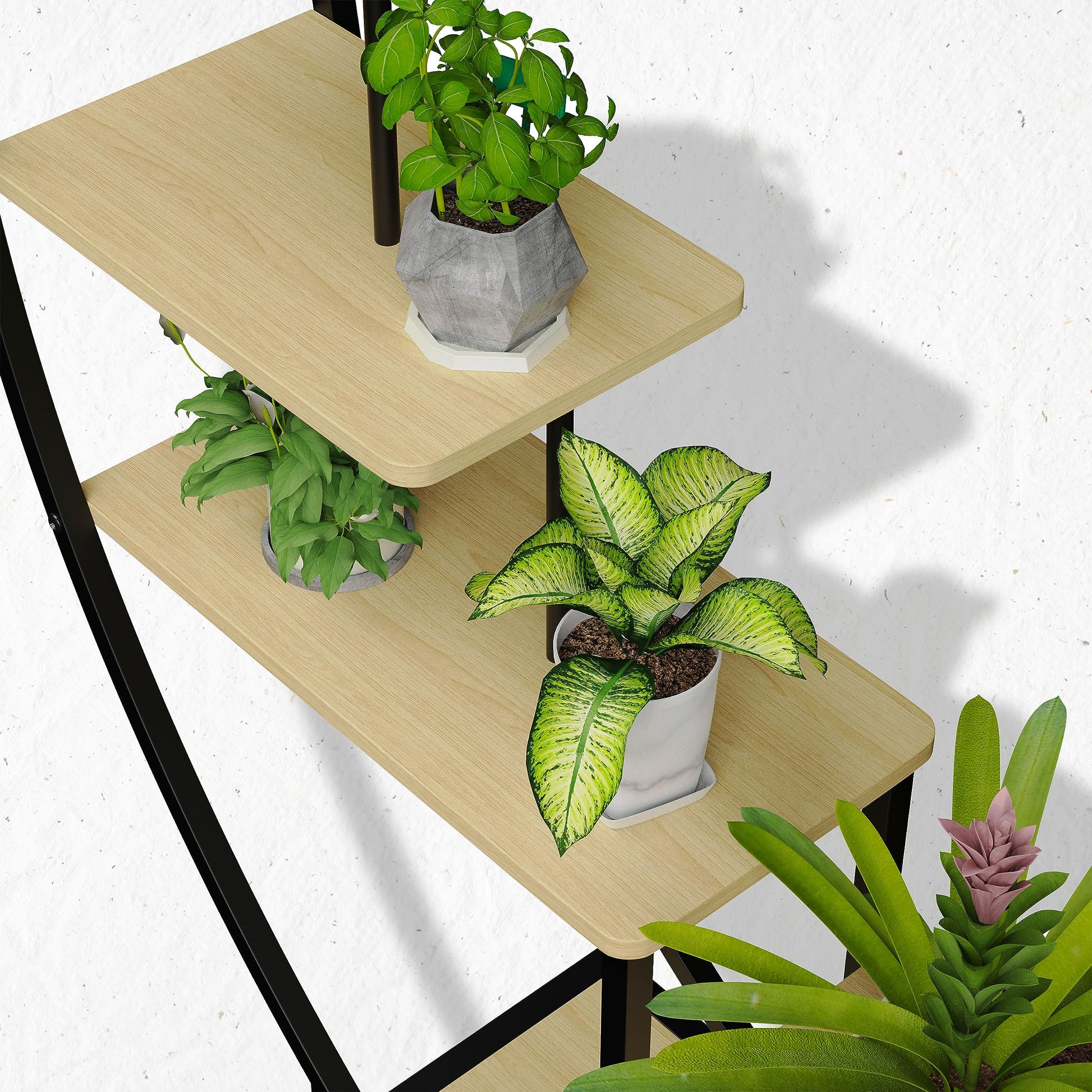 "UNIQUE DESIGN - With its half-moon shape design, your plant stand will become a focal point in your decor and looks elegant, modern, and stylish compared to traditional upright flower stands. This plant shelf is also ideal for saving space. You can place it in the hallway, on the balcony, in the living room, or in other tight spaces to display your plants and decorations.