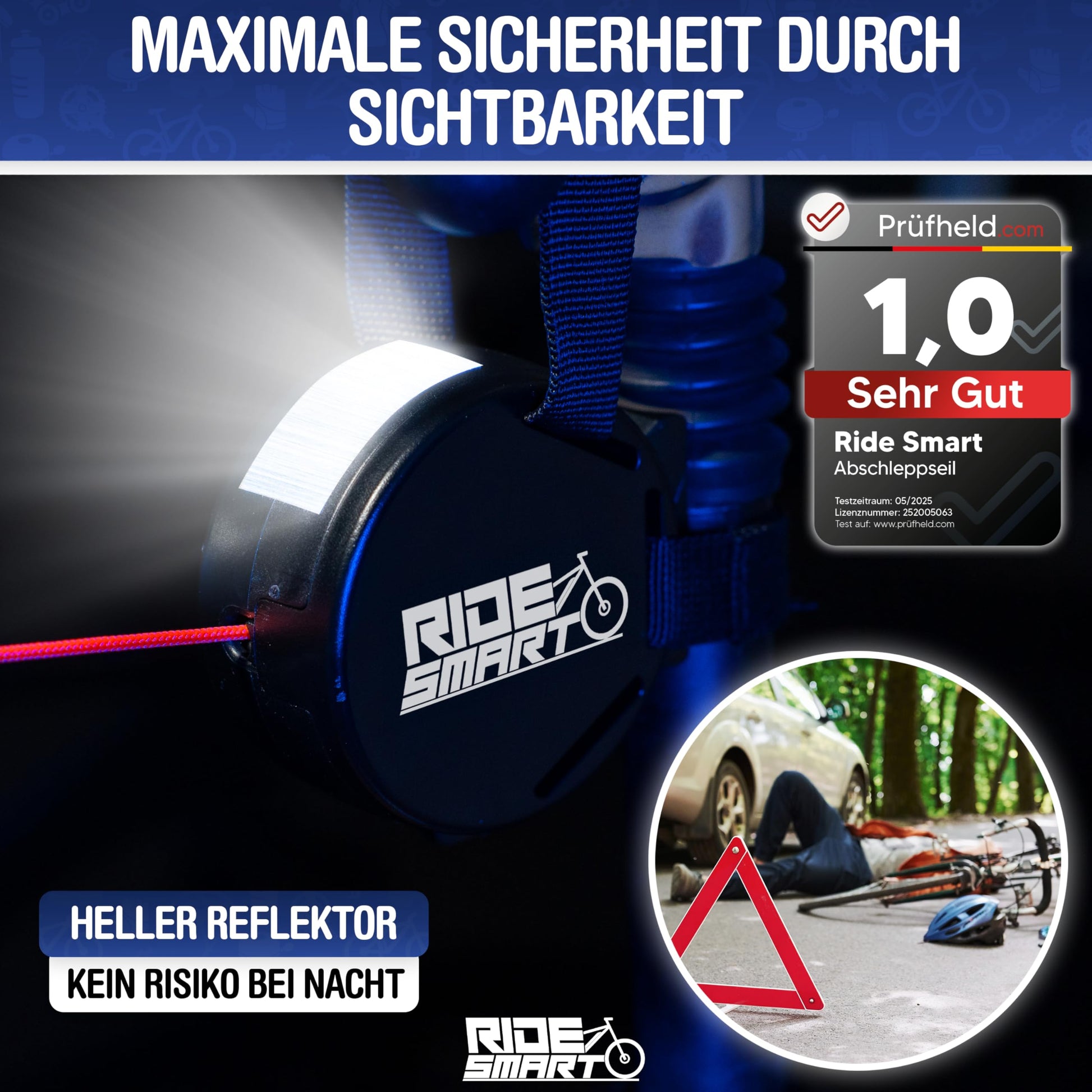 RIDE SMART® Bike Tow Rope for Kids | 3in1 Complete Set, with Reflective Strip, 130kg Tensile Strength - 2m | Bike E-Bike Pull Rope Tow Rope Bike Rope as Assistance for Towing the Child