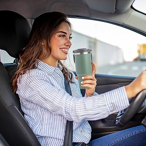 Riley Joy thermal cup 900ml, 1200ml drinking cup with lid and stainless steel straw insulation for hot and cold drinks coffee mug for water, coffee or iced tea (Green, 900 ml)