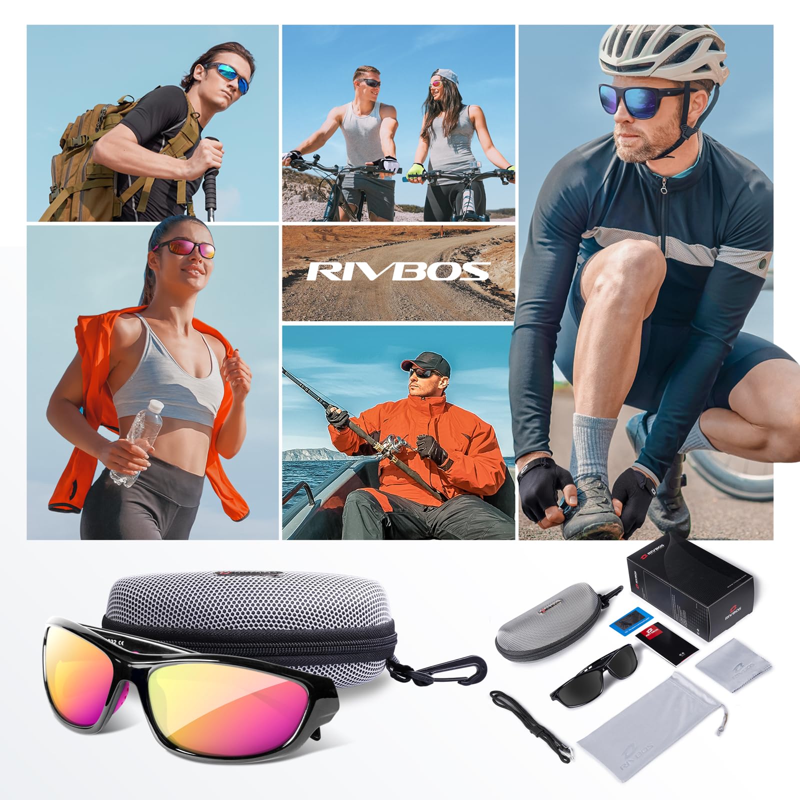 ["High-quality SWITZERLAND TR 90 Material Frame: Super light, stylish, and durable; Glass Height: 40 mm (1.57 inches); Lens Width: 64 mm (2.52 inches); Leg Length: 140 mm (5.51 inches); Nose Bridge: 30 mm (1.18 inches); Frame Length: 140 mm (5.51 inches).","TAC polarized and mirrored lenses - provide 100% UVA and UVB protection against sunlight, filter 100% of all UVA/UVB/UVC and harmful blue light rays up to 400 nm. Restore true color, eliminate reflected light and scattered light, and protect the eyes perfectly.","Stylish Design: The ultra-lightweight design is perfect for motorcycles, bicycles, running, fishing, racing, skiing, outdoor hiking, and more. RIVBOS sunglasses are not only practical but also stylish. The classic design is suitable not only for outdoor sports but also a fashion item that never goes out of style. It will not look abrupt when paired with stylish clothing, but complement it even better.","Packaging and Accessories: Each RIVBOS sunglasses are packaged in a portable hard shell case and a colored box, including pouch/strap/cleaning cloth.","You have no risk trying it out, just believe, we will always be with you."]