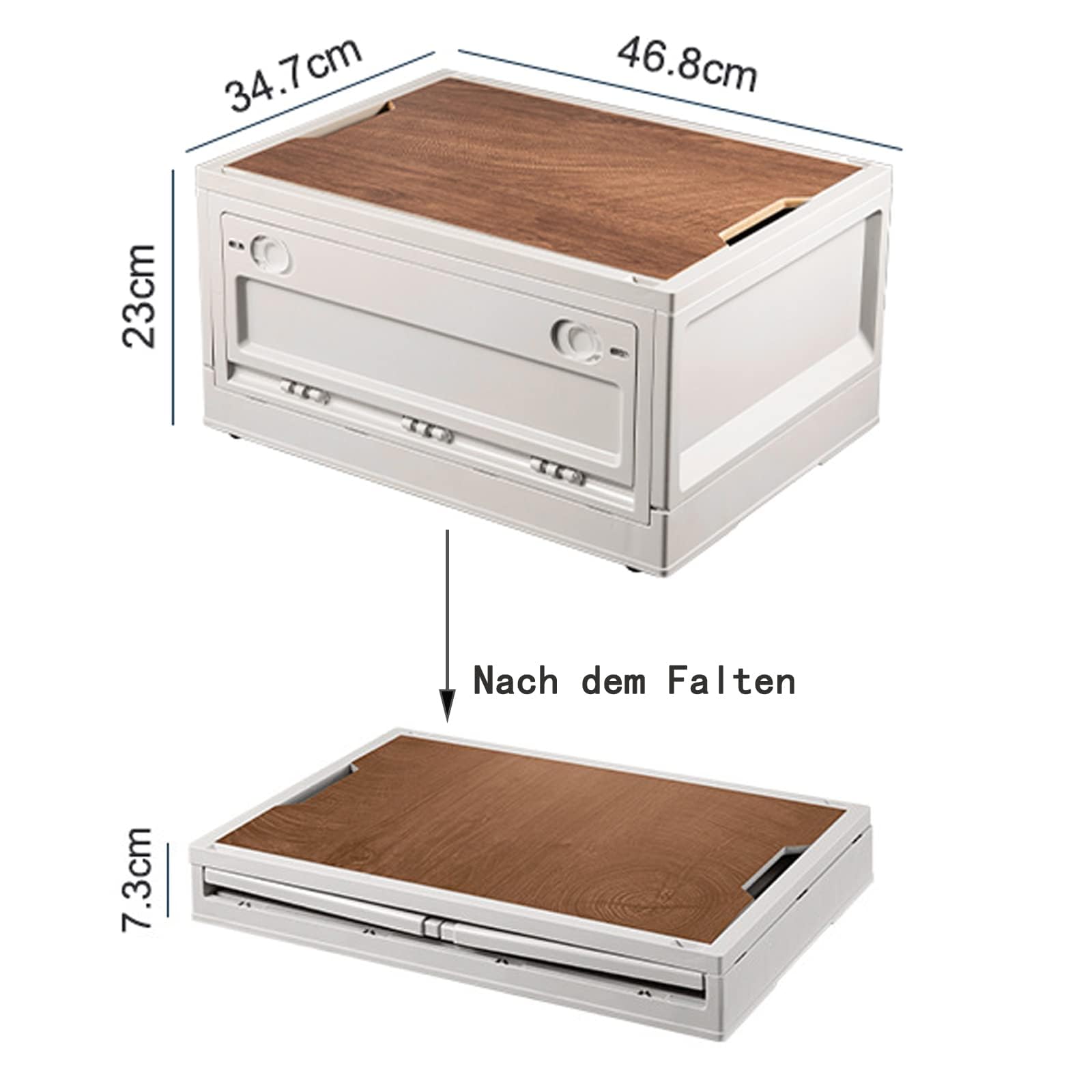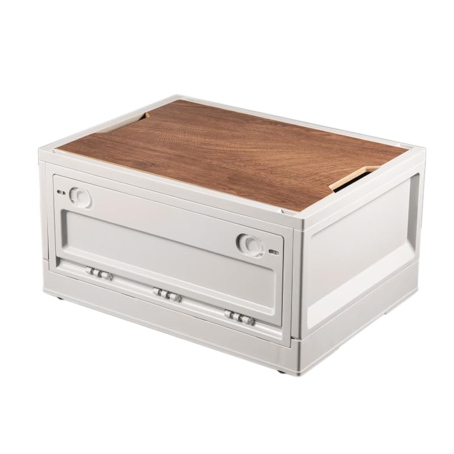 ["Folding Outdoor Camping Table Set. Dimensions: 18.4 x 13.7 x 9 inches (LxWxH), Volume: approx. 38 L, Color: Green; Design with increased capacity, can store all kinds of camping gear, no need to carry large bags and small pockets. This box can be easily collapsed and stored when not in use.","Practical Storage Box: With multidirectional switch, top wood grain, easy to disassemble and stack in multiple layers; Front and back can be opened in both directions, pick-up is not chaotic.","Design: No deformation and cracking, durable, with wheels, easy to move, simple and labor-saving, stable and does not tip over. The lid of the box is a wooden board that can be used as a cutting board, tray, and camping table.","Suitable for Many Occasions: Camping box for car is not only your good camping partner, but can also be used as a trunk organizer. It can also be placed at home to store clothing, children's toys, daily necessities, etc. It is very durable and does not deform.","Perfect Shopping Experience: If there are quality issues, please feel free to contact us. It is also suitable for safely storing and transporting food in the car while driving"]