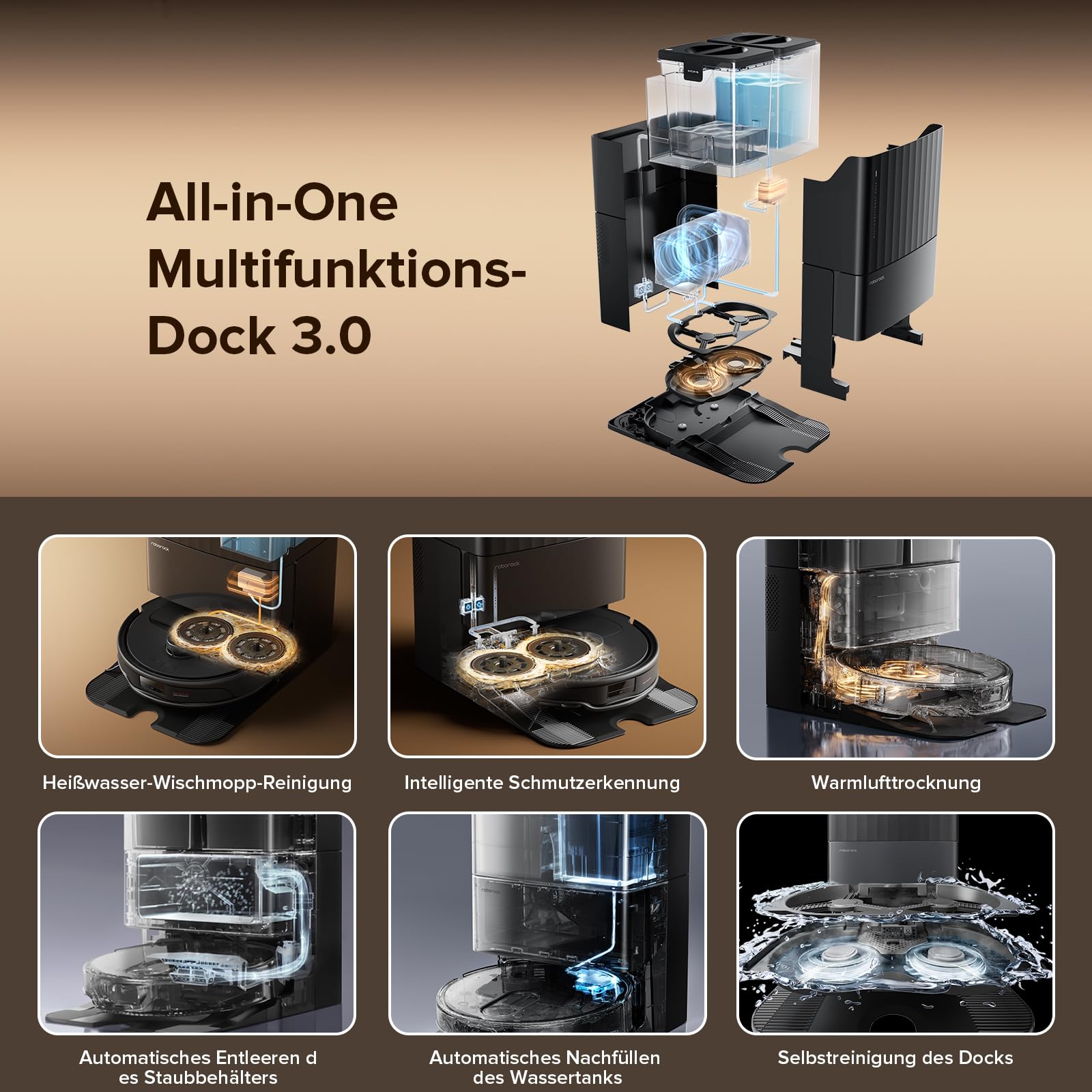 "Reaches effortlessly every corner: The exclusive side brush with edge sweeping system provides an unbeatably thorough cleaning coverage through the Roborock FlexiArm Design, eliminating blind spots and leaving no dirt behind. Dual cleaning power: With 10,000 Pa HyperForce suction power and two counter-rotating full rubber rollers, hair, dust, and residues are efficiently picked up on various surfaces such as wooden floors, tiles, and carpets, achieving an exceptionally high level of cleanliness. For spotless floors: Clean floors without effort. When the two mops rotate, pressure and moisture remain constant, making it easy to remove stains. Enhance cleaning experience: Depending on the cleaning task, the Roborock Qrevo Master automatically raises either brushes or mops or both. This optimizes cleaning effectiveness while avoiding streaks after cleaning. Your guarantee for effortless cleaning: Experience the enhanced Multifunction Docking Station 3.0 with improved mopping and self-cleaning capabilities: cleaning without manual intervention, with improved performance and intelligence. Docking station self-cleaning: The integrated self-cleaning module effectively cleans the base tray of the docking station. Rotating scrapers ensure no manual maintenance is required. The entire self-cleaning module and docking station base are detachable, making them easy to clean when needed. Safe navigation: With structured light and an RGB camera, the robot identifies and avoids 62 object types in 20 categories. It navigates quickly around obstacles, minimizing the need for manual intervention in both bright and dark environments. Ask "Rocky" for help: Simply say "Hello Rocky" to start cleaning, adjust settings according to cleaning scenarios, or call the robot when needed. Enjoy the convenience of voice control, even offline. The promotion runs longer than the spring offers, specifically from March 24th to March 31st."