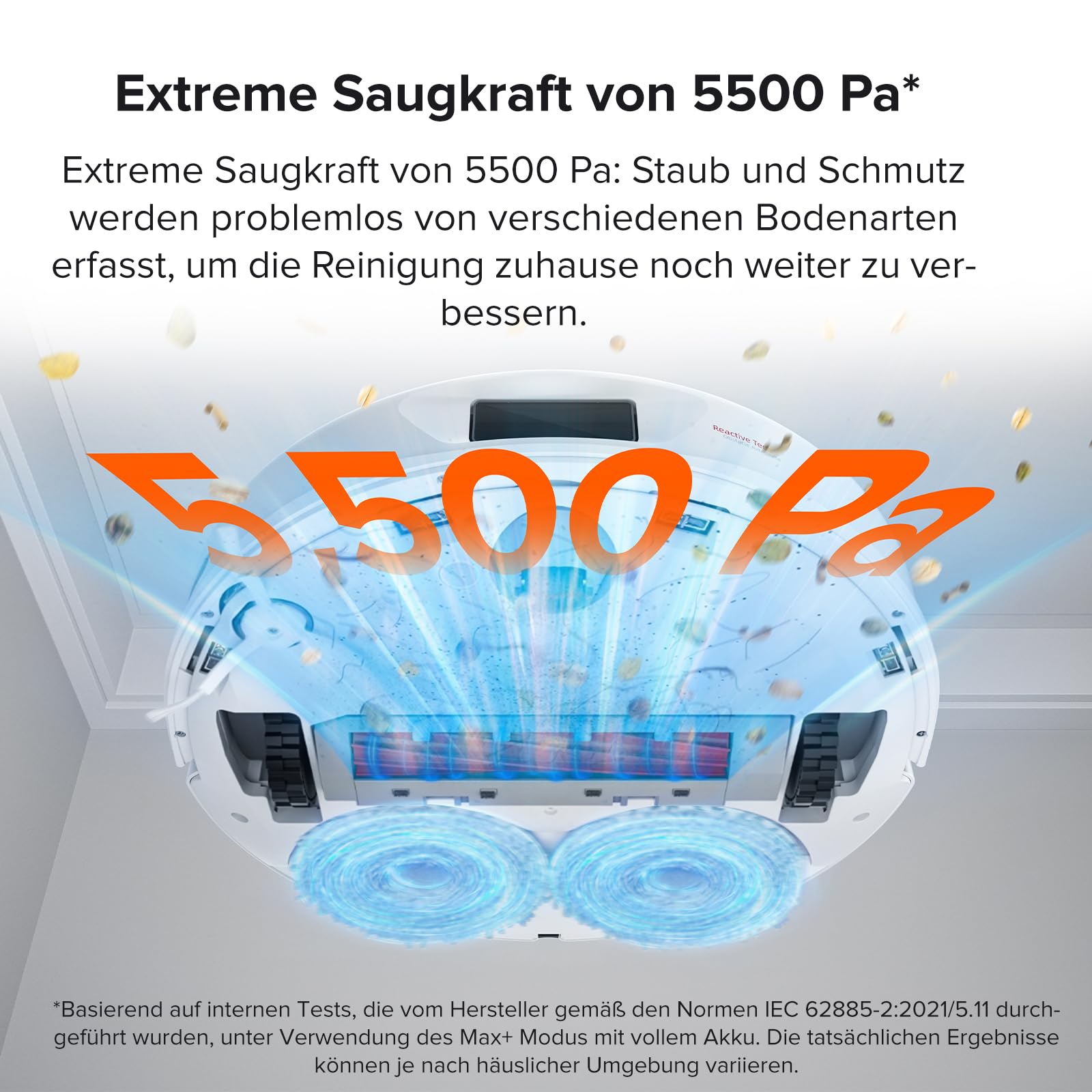 "Double rotating mops, extreme suction power of 5500 Pa. Roborock Qrevo vacuum robot with dust collection station allows for even more efficient cleaning. The newly developed rubber brush cleans even more thoroughly without getting tangled. Extreme suction power of 5500 Pa ensures the deep-seated residues and dust particles from hard floors and carpets."