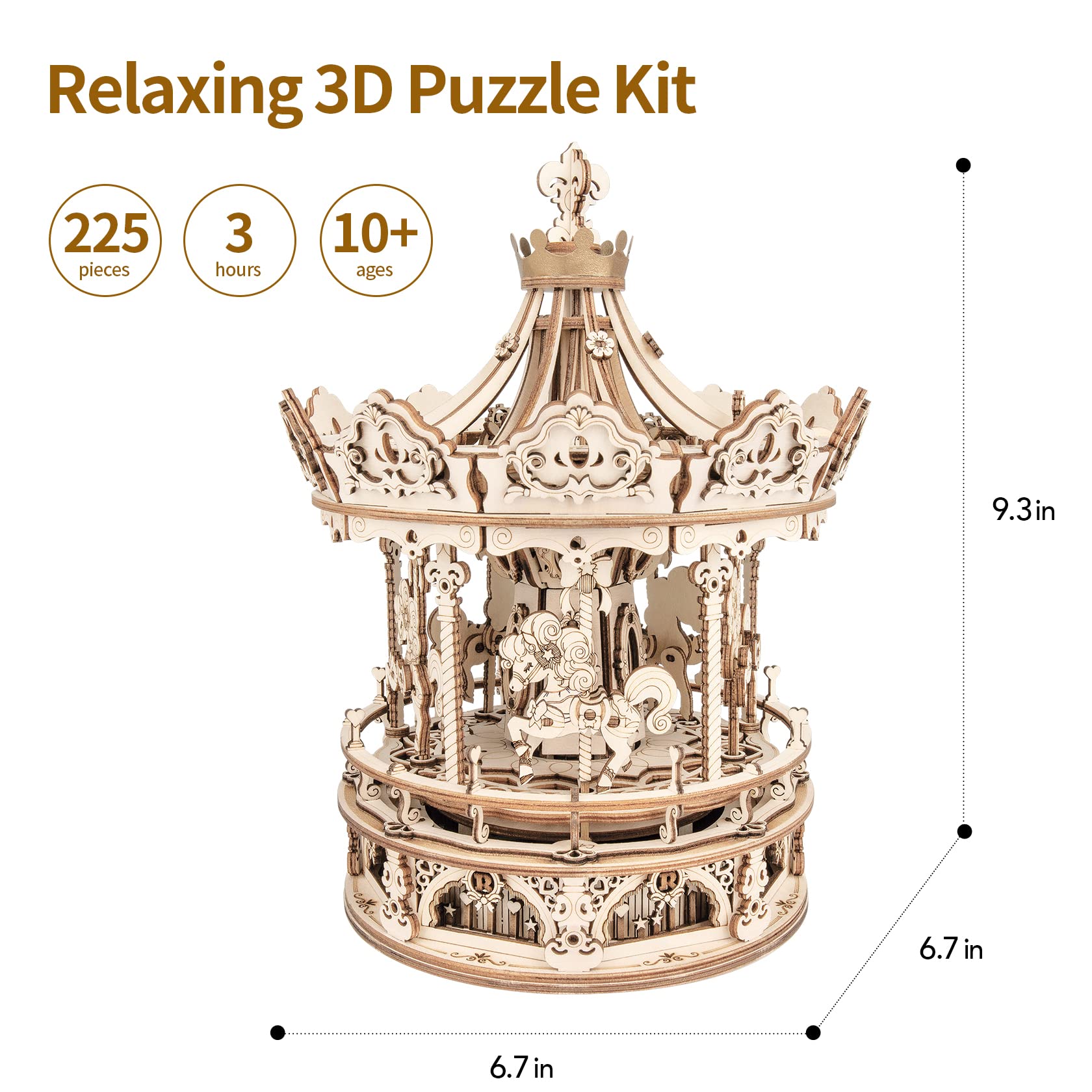 Robotime 3D Puzzle Wooden Carousel, laser-cut model kit for adults, DIY gift for Christmas & birthday gift.