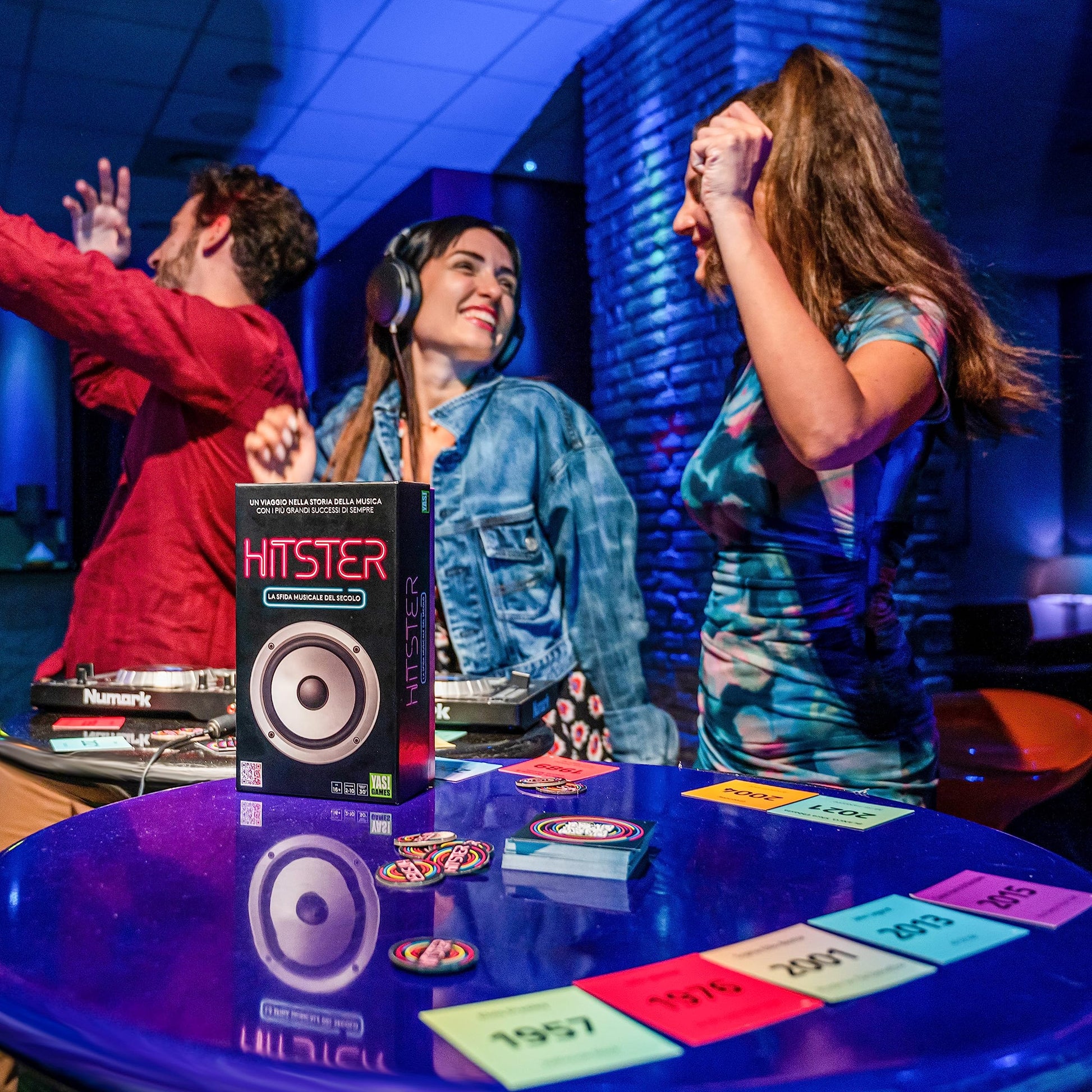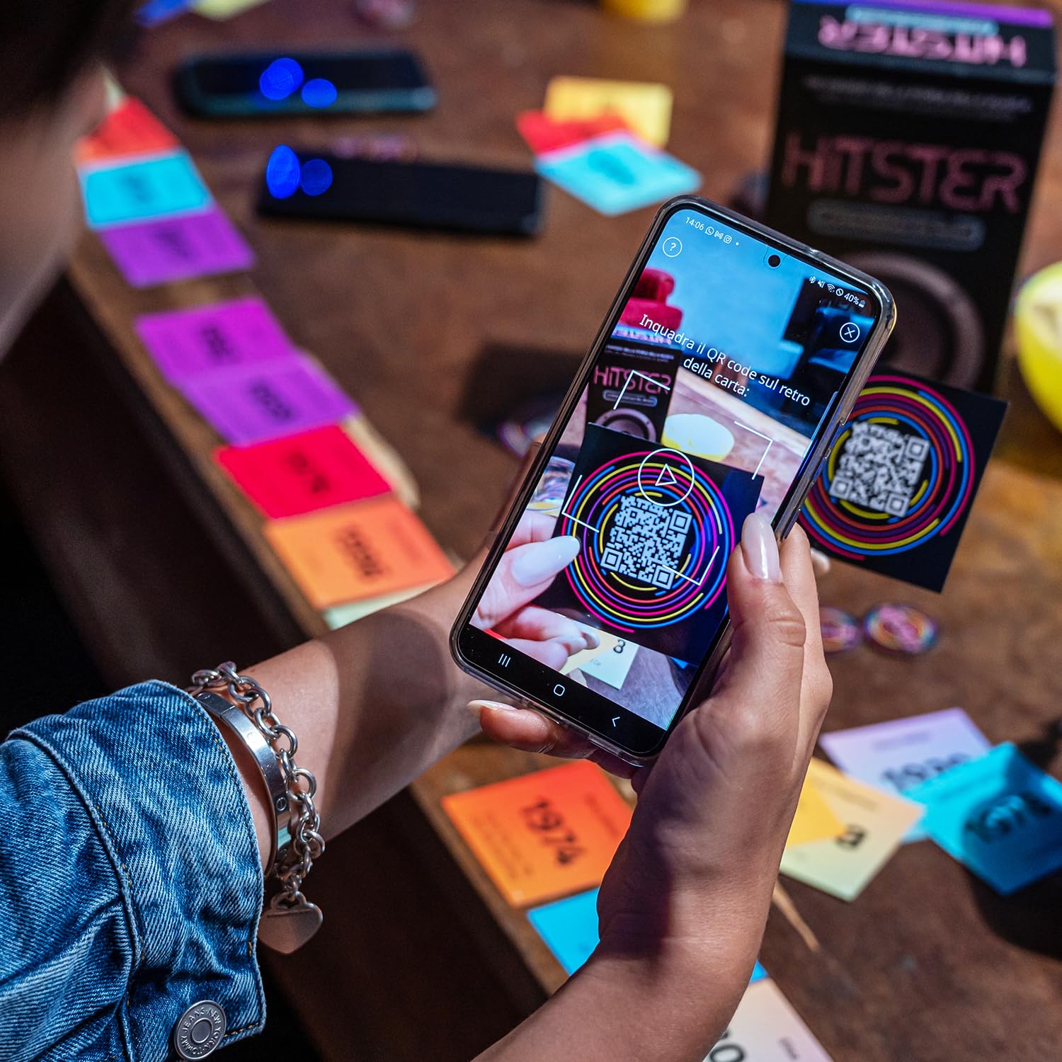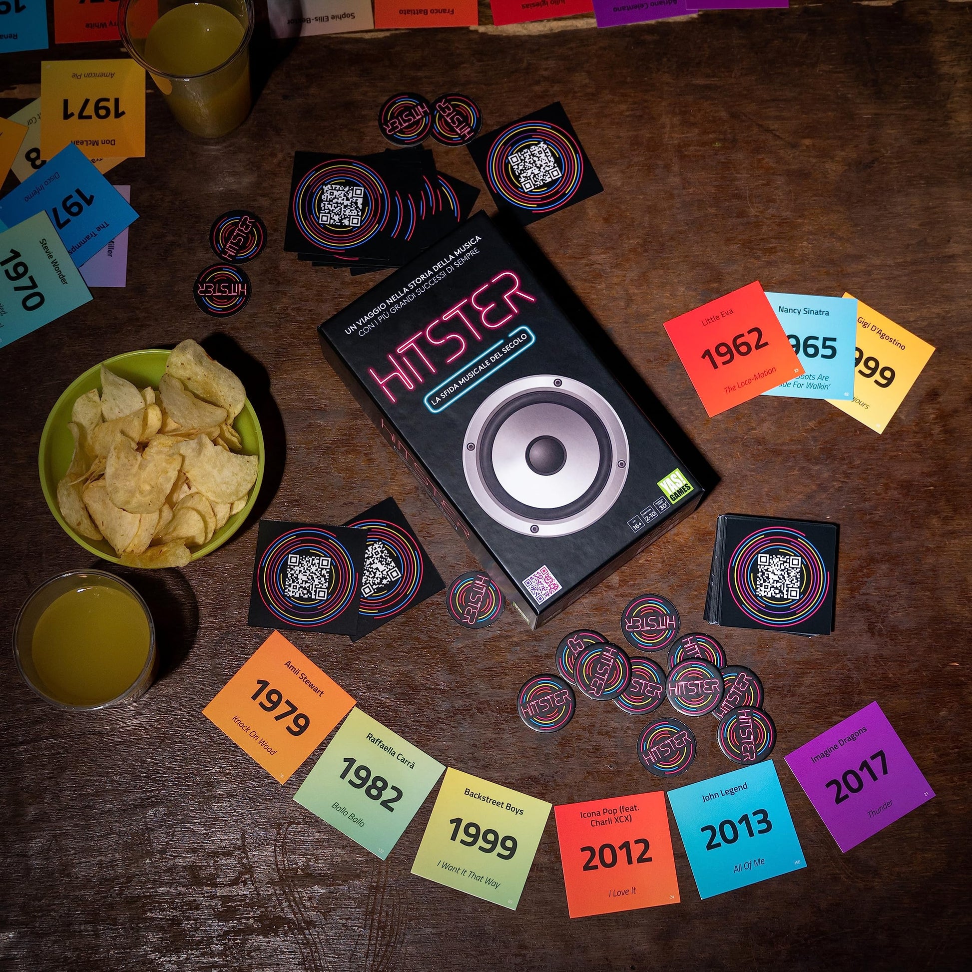 ["A PARTY GAME - The party game that turns the evening into a real party!", "⭐A playlist that slaps - More than 300 Italian and international hits that have shaped the history of music in Italy in the last century.", "SPOTIFY - Fish a card and scan the QR code with the free app. Spotify will open (Free or Premium) and the music will start playing!", "CREATE THE TIMELINE - Listen to the song and place it in the correct space within the music timeline. How much do you know about pop music? Do you remember the year the big classics came out?", "🏆HANDS UP FOR THE DJ - The player who first lays down 10 cards in the timeline in a row will be the top DJ!", "4 game modes - Try out the advanced, expert, and cooperative modes in addition to the classic mode!", "FOR EVERYONE - Players: 2-10; Age: 16+"]
