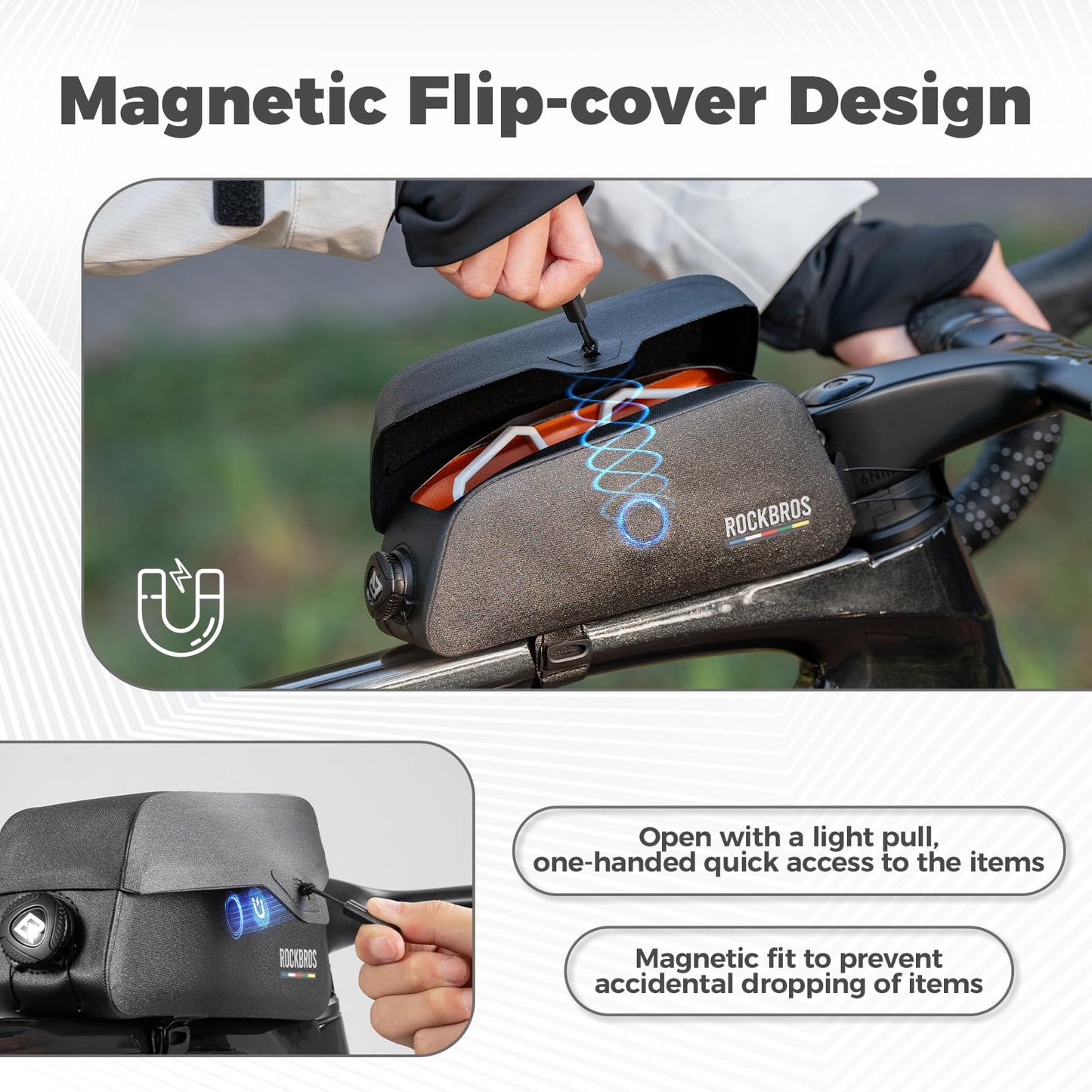 ROCKBROS Road to Sky bike top tube bag 100% Waterproof Magnetic frame bag with Magnetic lid for road bike MTB 0.6L