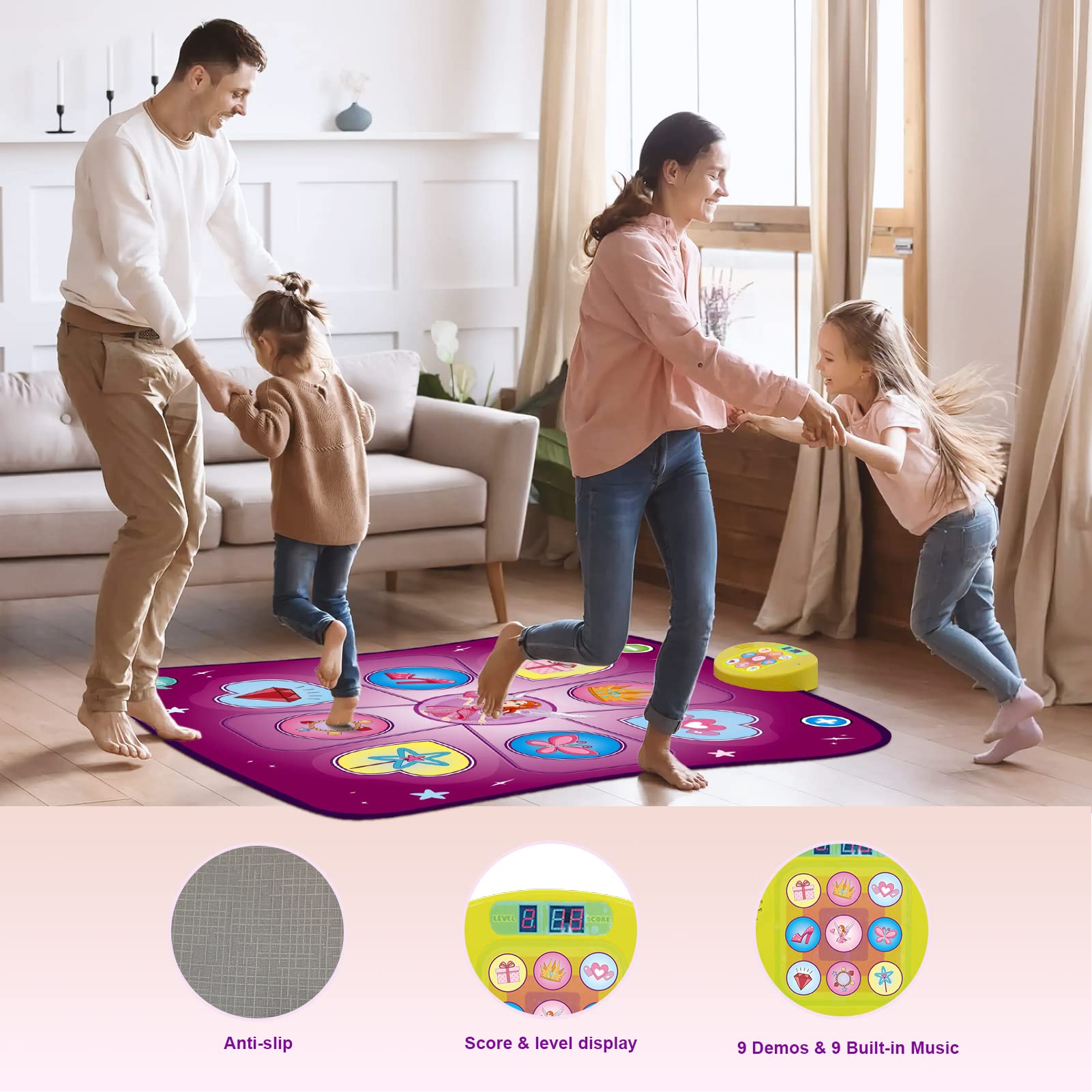 Rodzon Dance Mat Kids Toy Gifts for Girls Boys Age 3 4 5 6 7 8 Years Music Mat Challenge Modes LED Integrated Music Christmas Birthday Kids Toys AML9886 (Purple)