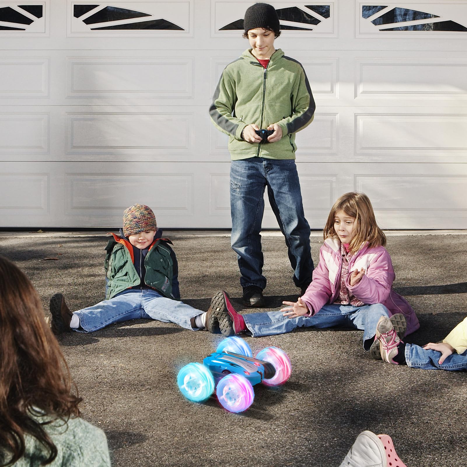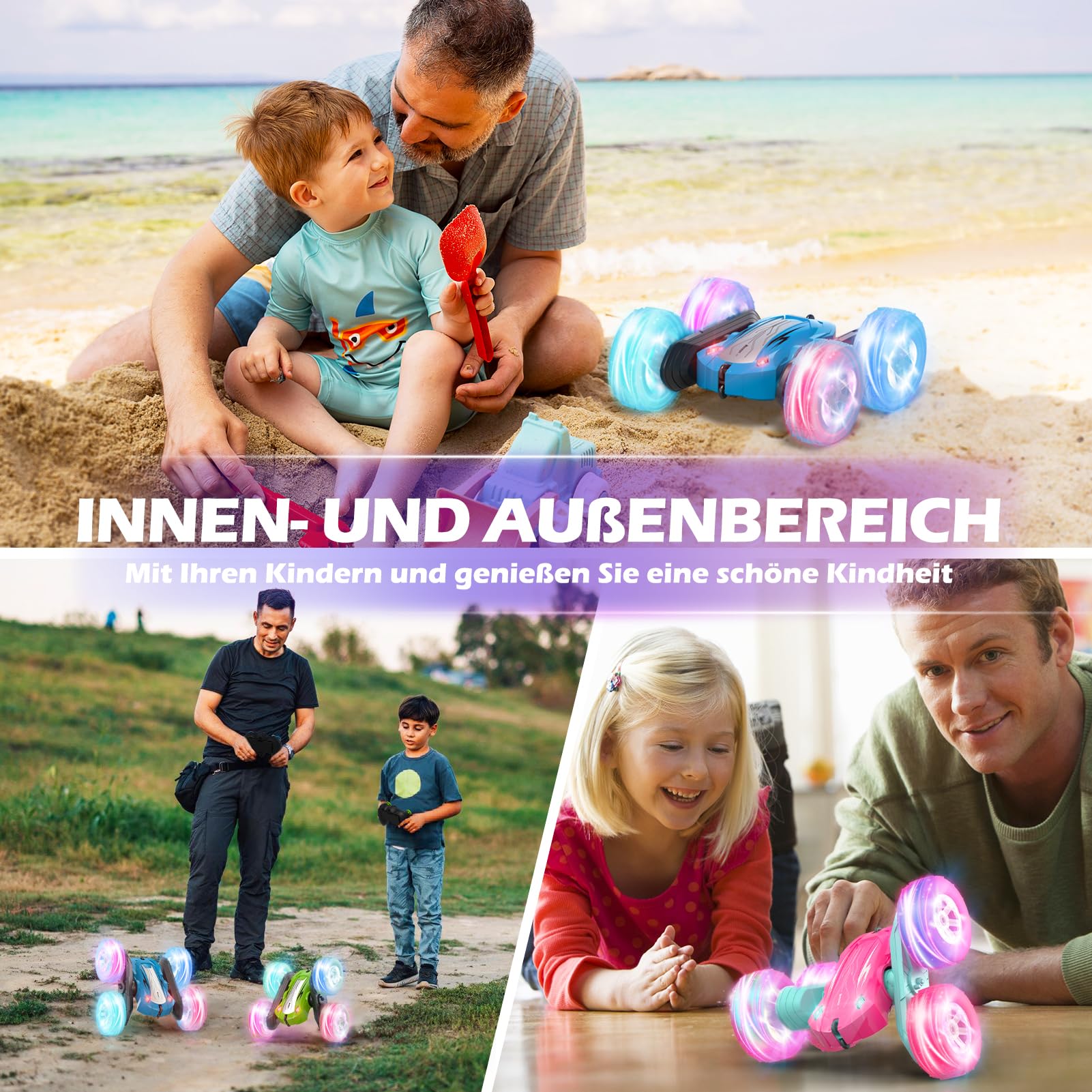 Rodzon Remote Control Car 3 4 5 6 7 8 9 Years Old Games LED Flashing RC Car Toy Boys Christmas Birthday Gifts Kids Toy 360° Flip Car Indoor Outdoor Outside Sand Beach Garden (Blue)