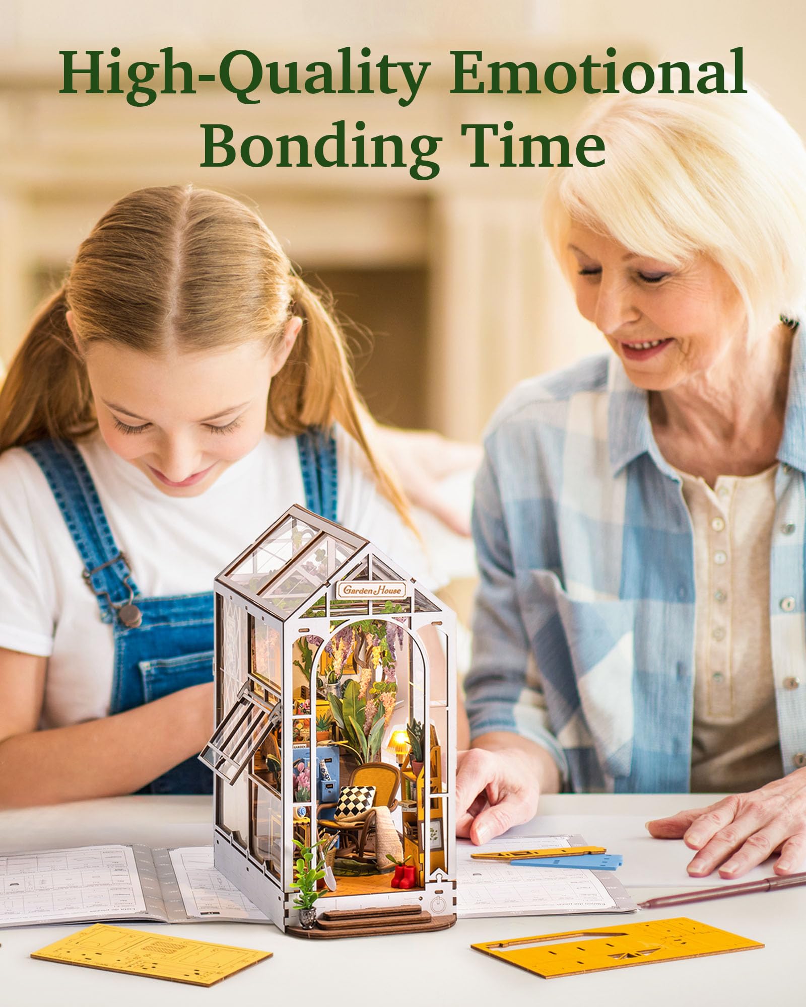 ["Night light with touch switch The Rolife book nook comes with LED light (batteries not included) and touch switch, serving as a night light that creates a warm atmosphere for your home. Spend 5 enjoyable hours with the Rolife miniature DIY book nook kit and create your own unique memories during assembly time. The final size measures 24x20x11cm.","Great bookshelf, desk, and library decoration Its cabin shape and detailed design create the illusion of entering a hidden world behind your shelves. Immerse yourself in the Rolife book nook model kit, a gateway to endless joy. Perfect for adding magic to any corner of your home.","Perfect gift choice with DIY fun Rolife 3D puzzle wooden bookends made of high-quality natural wood ensure durability and charm. Take time for this stress-relieving DIY project. A creative gift for anyone. Treat yourself to endless joy with this hobby! Explore the world of creative design and immerse yourself in the beauty of craftsmanship.","DIY miniature model kit Dive into the world of creativity and craftsmanship with the Rolife Book Nook kit. The sturdy diorama bookend allows for easy assembly without any additional tools or glue. Each piece is precisely laser-cut for a seamless pop-out and perfect fit, ensuring a smooth building process.","Easy assembly, Reliable support Numbered parts and detailed instructions make assembly easy. Innovative design and endless possibilities make it not just a book nook model kit for adults, but a gateway to joy in DIY craftsmanship. If any issues arise during assembly, please contact us. We will promptly provide assistance and replace damaged parts.","Batteries not included You should prepare 2 AAA button batteries yourself."]