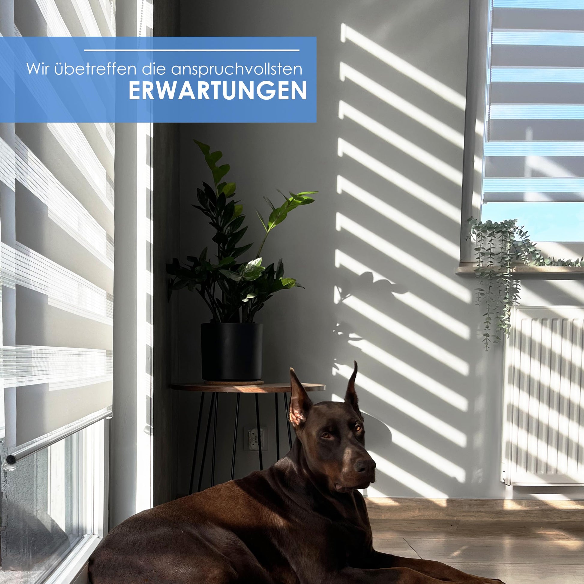 ["The Rollmayer Duo blinds combine high-quality craftsmanship with an attractive, low price, making them an excellent choice for budget-conscious buyers.","Thanks to the innovative clamp-fix bracket, you can quickly and easily attach the blind to the window without drilling, making the installation extremely user-friendly.","Our blinds are made of 100% polyester, making them easy to clean. In case of dirt, they can be simply wiped with a damp cloth, allowing for quick and easy cleaning.","The Duo blind is both light-permeable and opaque, giving you the flexibility to adjust it according to your own needs. This allows you to always create the desired balance between light and privacy.","The total width of the blind can be about 1-2 inches larger than the selected fabric width. This should be taken into account during installation to ensure a precise fit.","Technical note: Blinds up to 51 inches wide come with clampable brackets. For widths over 53 inches, the blinds are shipped with screwable brackets for safety reasons."]