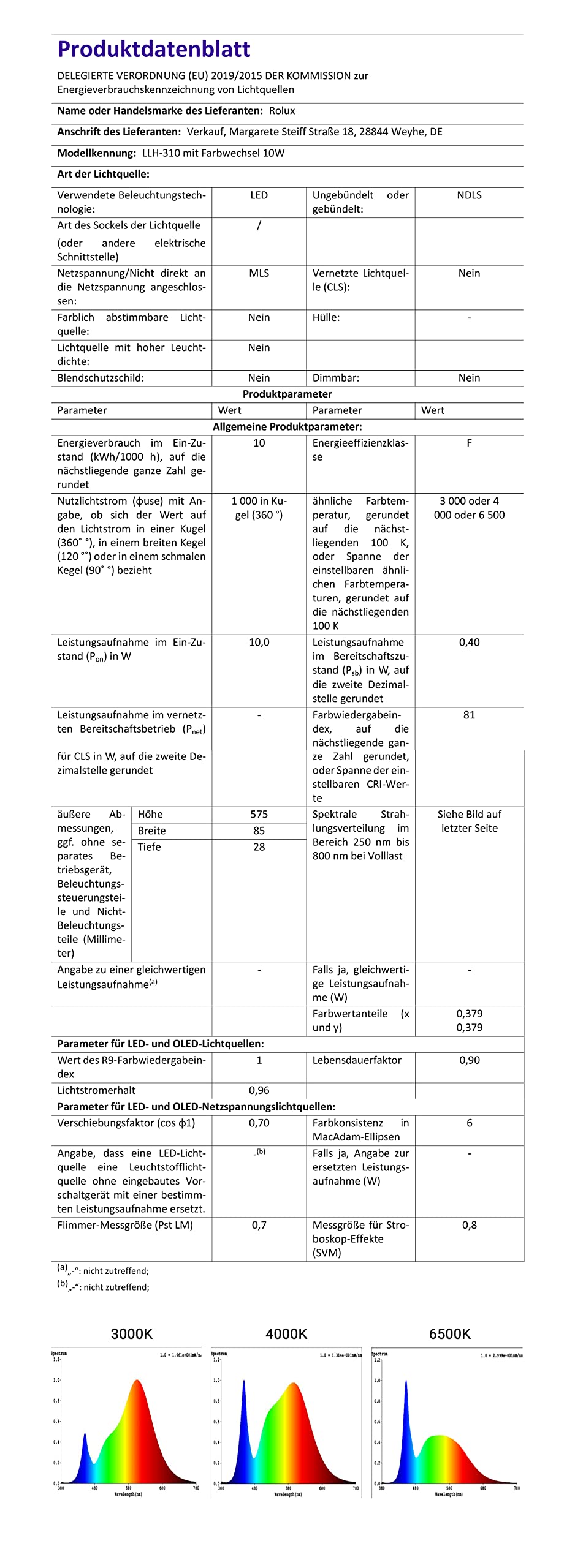Rolux LED-LLH-310, 10W, 3000K~6500K, Surface Mounted/Under Cabinet Light, Aluminum, 10 watts, silver, 57.5 x 8.5 x 3.5 cm