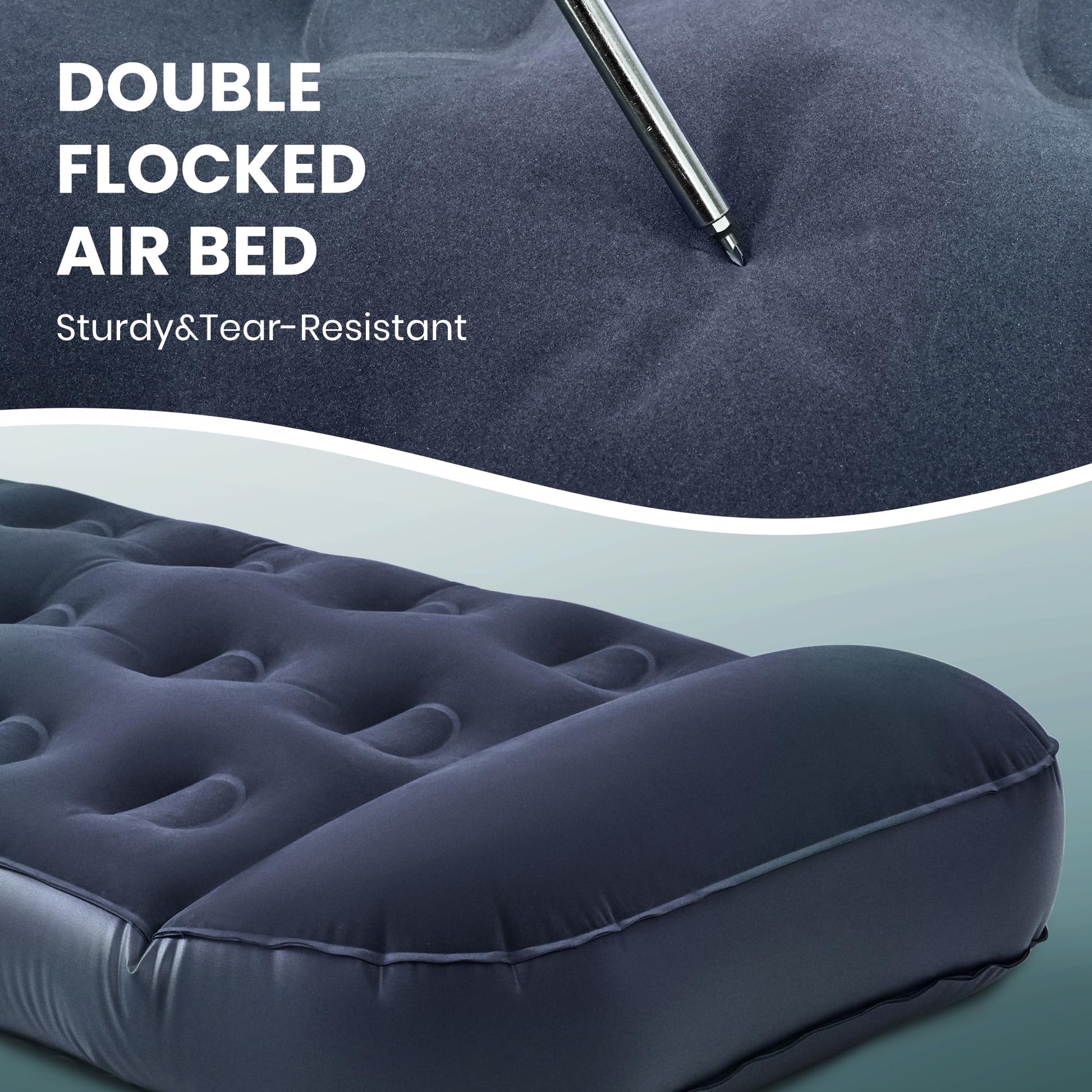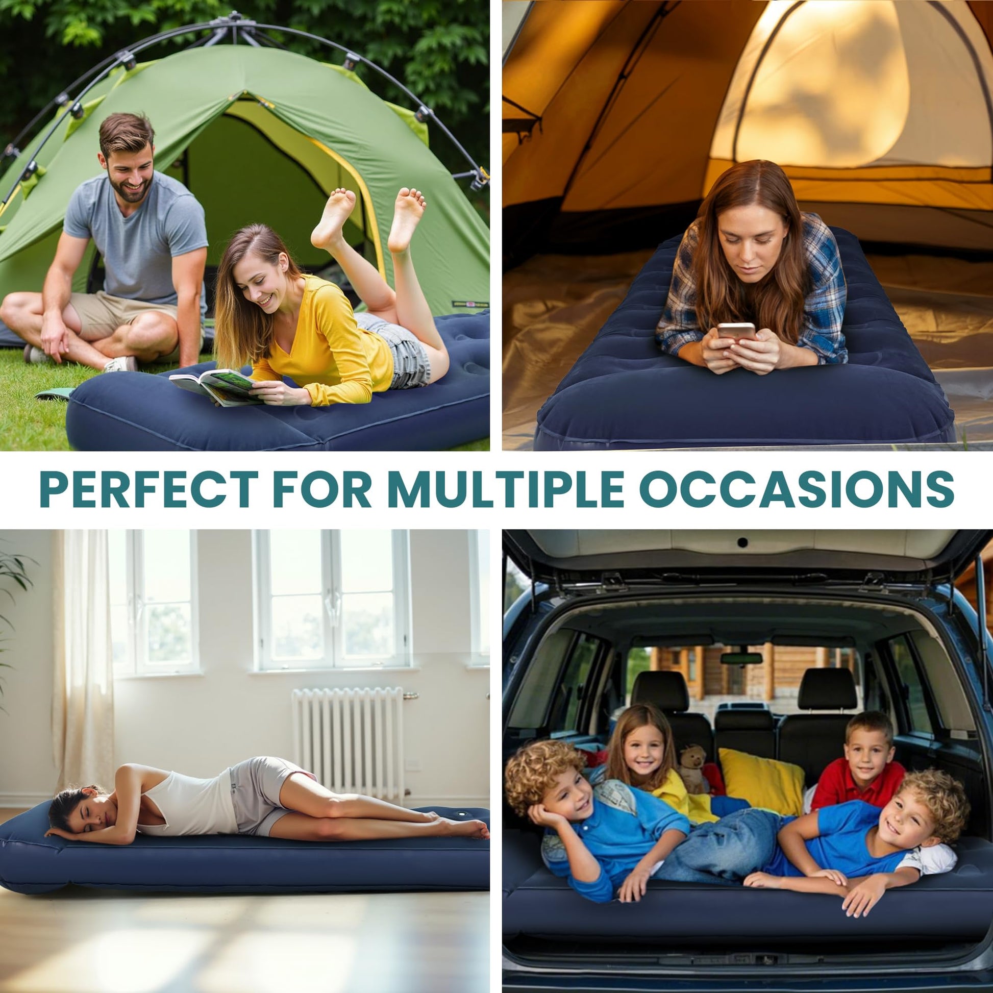 ROPODA Single Air Bed, Camping Mat, Inflatable Camping Mattress for outdoor and indoor use, built-in foot pump, flocked surface for adults, teenagers, and children, 188 x 77 x 28 cm (Blue)