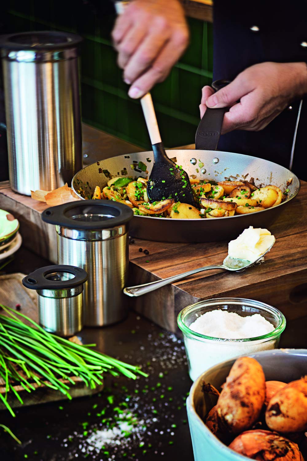 "RÖSLE Coffee canister with freshness lid: High-quality stainless steel storage container, the ideal material for storing food: tasteless, easy to clean, and durable. The storage container is ideal for storing 1.1 lbs of ground coffee or other foods. The RÖSLE canister with freshness lid is available in different sizes - the smaller ones are ideal for spices and herbs, the larger ones are suitable for both as a vessel and for storing cooked food. Airtight seal - the silicone edge of the glass lid ensures a tight seal for all foods - the hole in the silicone allows small coffee spoons to be conveniently hung. The food is stored space-savingly - the flat lid allows the containers to be stacked well, contributing to a perfectly organized kitchen - the transparent glass allows insight into the storage container without having to open the container. Length 4.9 inches - Width 4.3 inches - Height 7.9 inches - Weight 1.3 lbs - Material stainless steel 18/10 - Silicone and glass - Temperature resistance 356 °F - Capacity 1.5 l - Dishwasher safe"