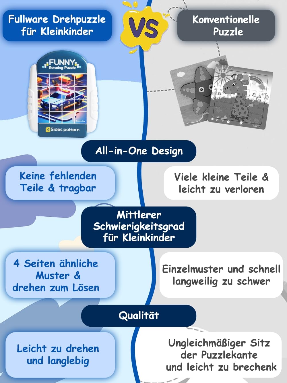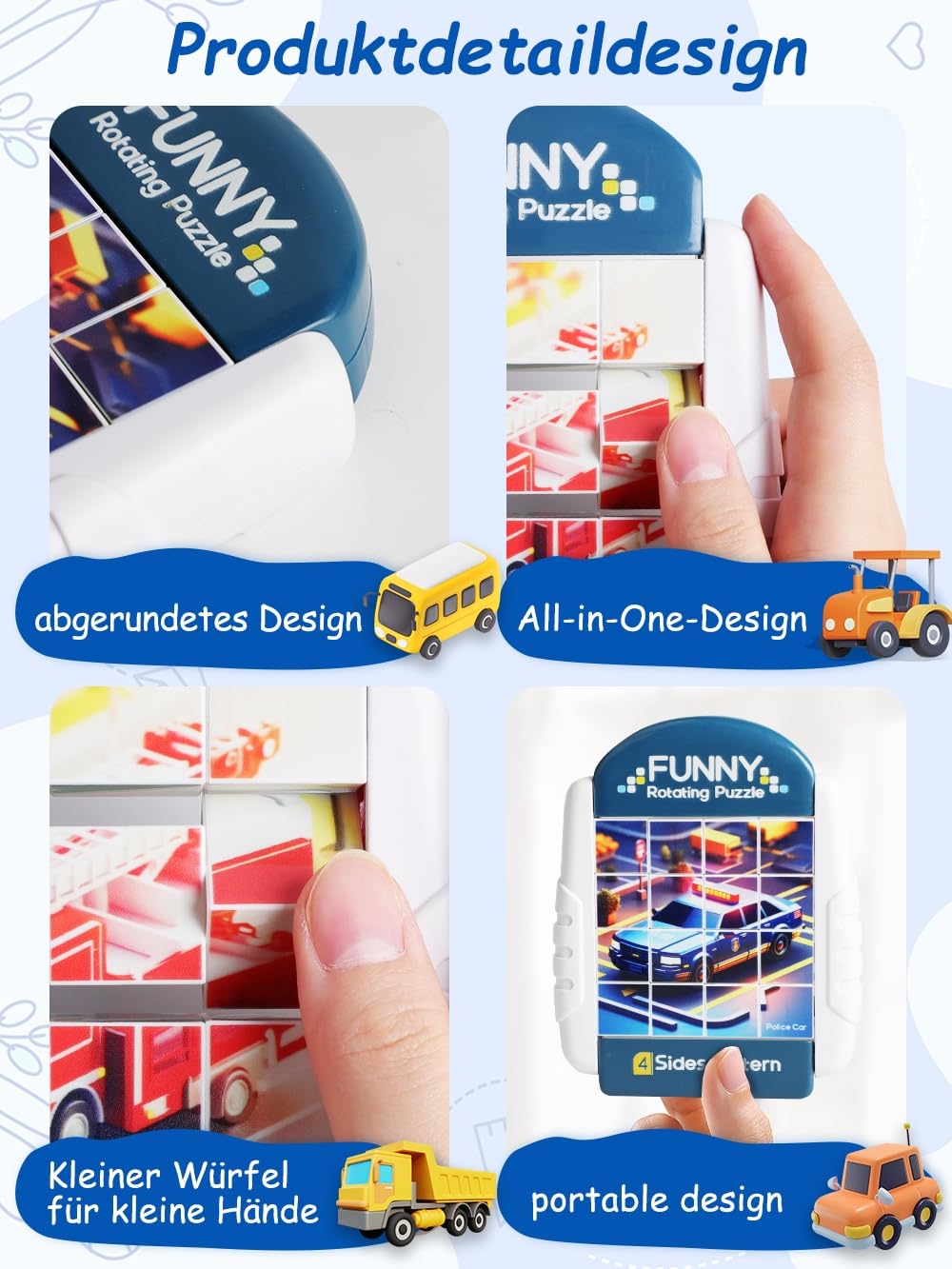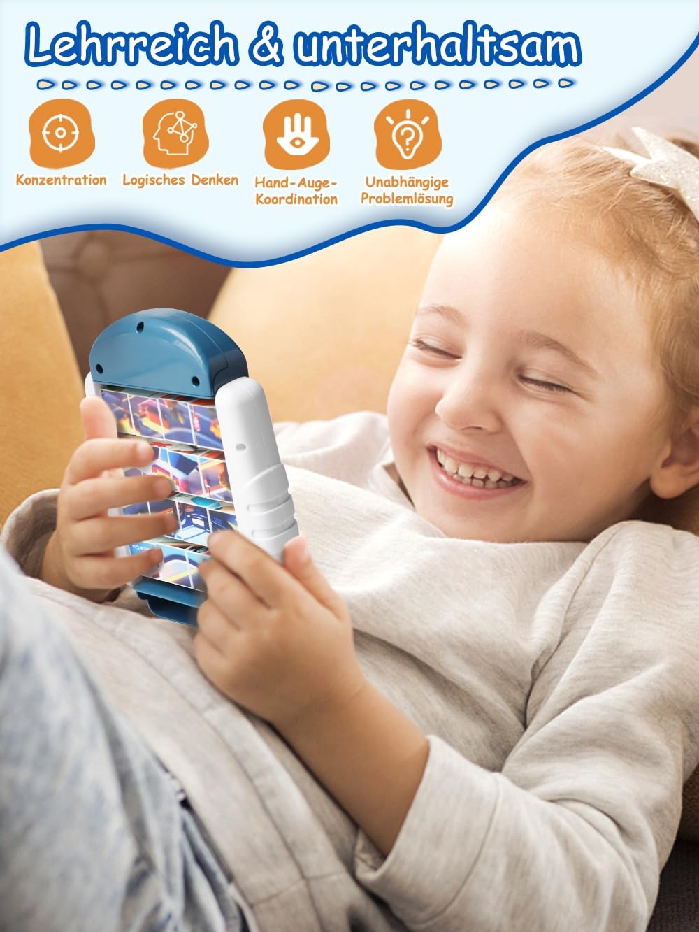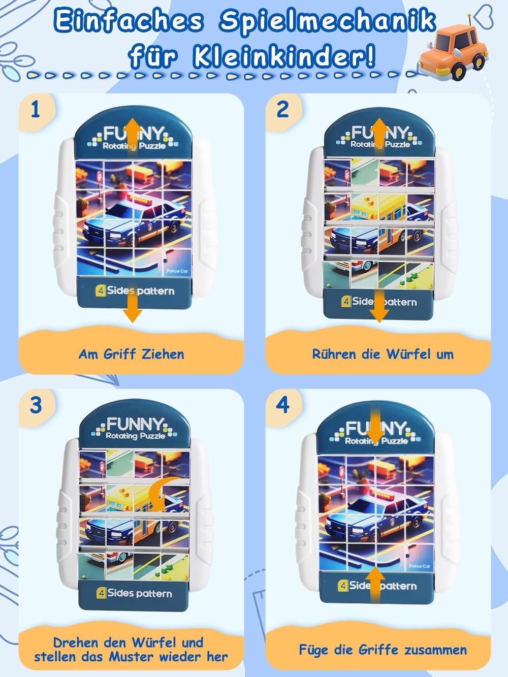 ["Upgrade to the 16-piece Rotating Puzzle - Compared to the 9-piece version, this 16-piece puzzle offers higher difficulty and is also interesting for school-age children and adults. It promotes various skills and provides greater playability.","Portable Kids Travel Entertainment - Whether in a car ride or on a plane, our compact rotating puzzles are portable and keep kids entertained without the risk of losing pieces.","Finger Dexterity Games - Kids use multiple fingers to rotate 16 cubes, promoting concentration, fine motor skills, and hand-eye coordination. Restoring similar patterns trains visual cognition and logical thinking.","Safe & Durable - Made from non-toxic, durable materials. Unlike paper puzzles, it does not easily break or tear, providing a smooth gaming experience.","Small Gifts for Kids Boys and Girls - This rotating puzzle is fun, educational, and durable. A perfect gift for birthdays or Christmas!"]
