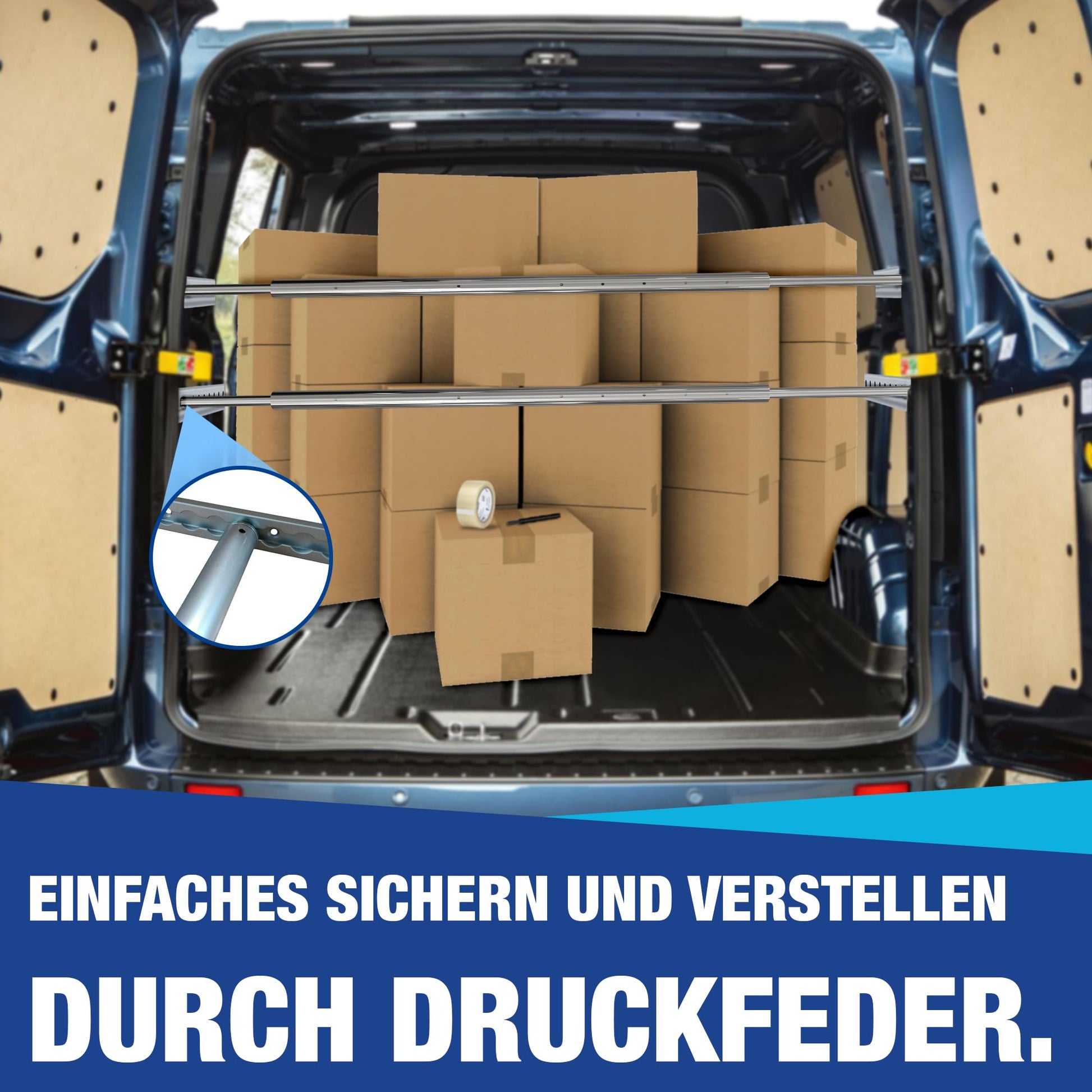["Adjustable round bar from 47.24 to 63 inches for flexible cargo adaptation. With pressure spring.",