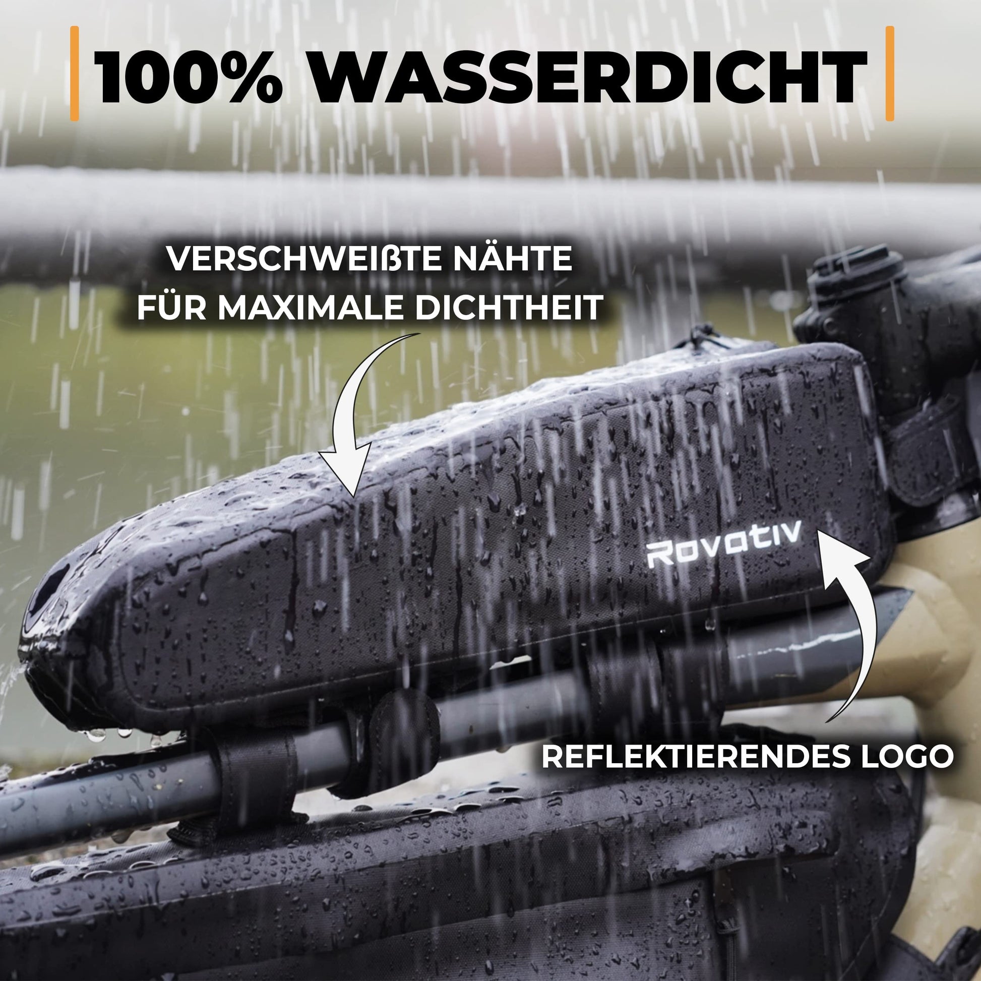 ["✅ 100% Waterproof: Thanks to welded seams, our top tube bag reliably keeps your equipment dry – a must-have for every gravel bike tour.", "✅ Stable Attachment: Trust in 3 extra strong Velcro straps for a quick and secure attachment of your top tube bag to your gravel bike, road bike, or MTB.", "✅ Durable & Long-lasting: With a weight of 230g and particularly robust TPU fabric, the frame bag is the perfect starting point for your innovative setup.", "✅ Timeless Design: We value high-quality craftsmanship and functionality of our bike frame top tube bag. Perfect for bikepacking or ultra-cycling.", "✅ Rovativ, a startup from Dresden: We are 100% specialized in waterproof bikepacking bags and continuously expand our range."]