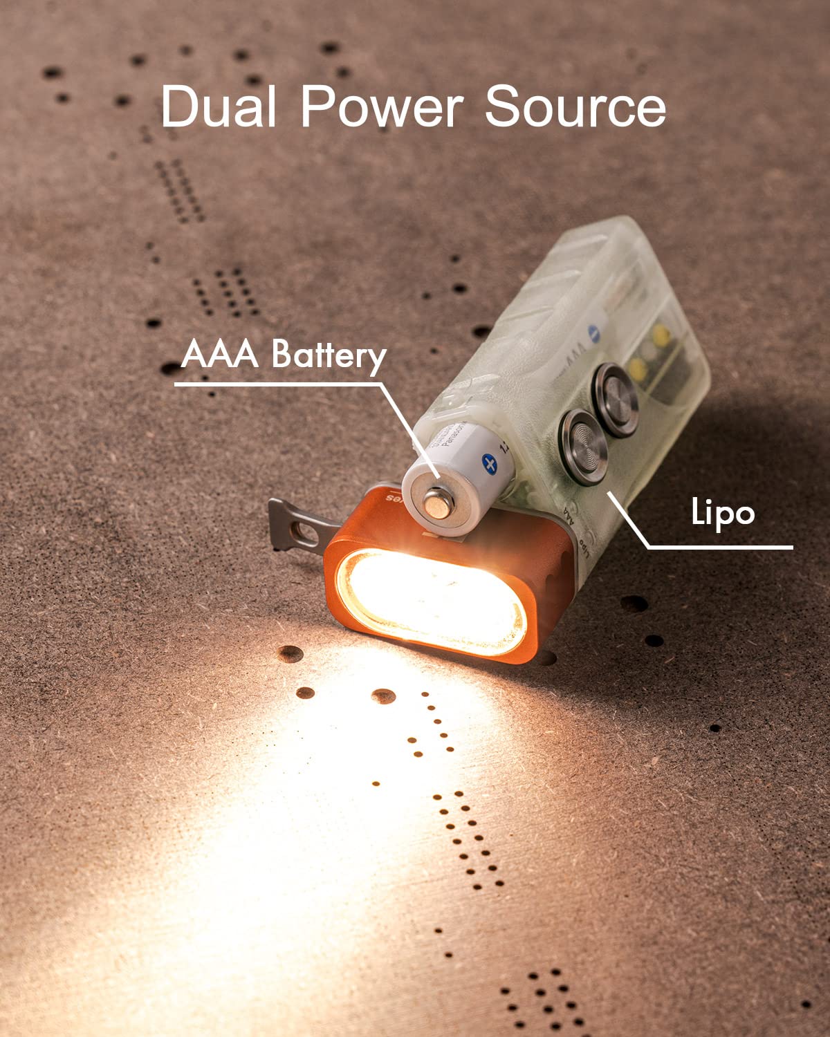 RovyVon E5 keychain flashlight, dual power sources, USB C, rechargeable and replaceable battery, EDC flashlight, 4000 K warm white emitter, mini flashlight with side light for camping
