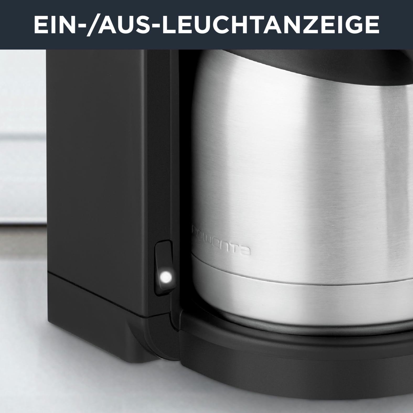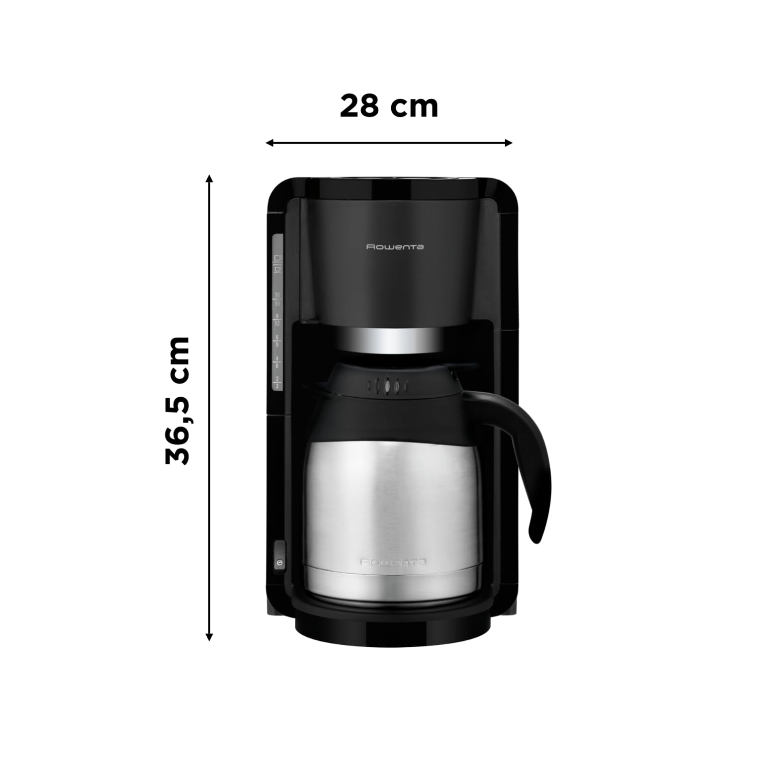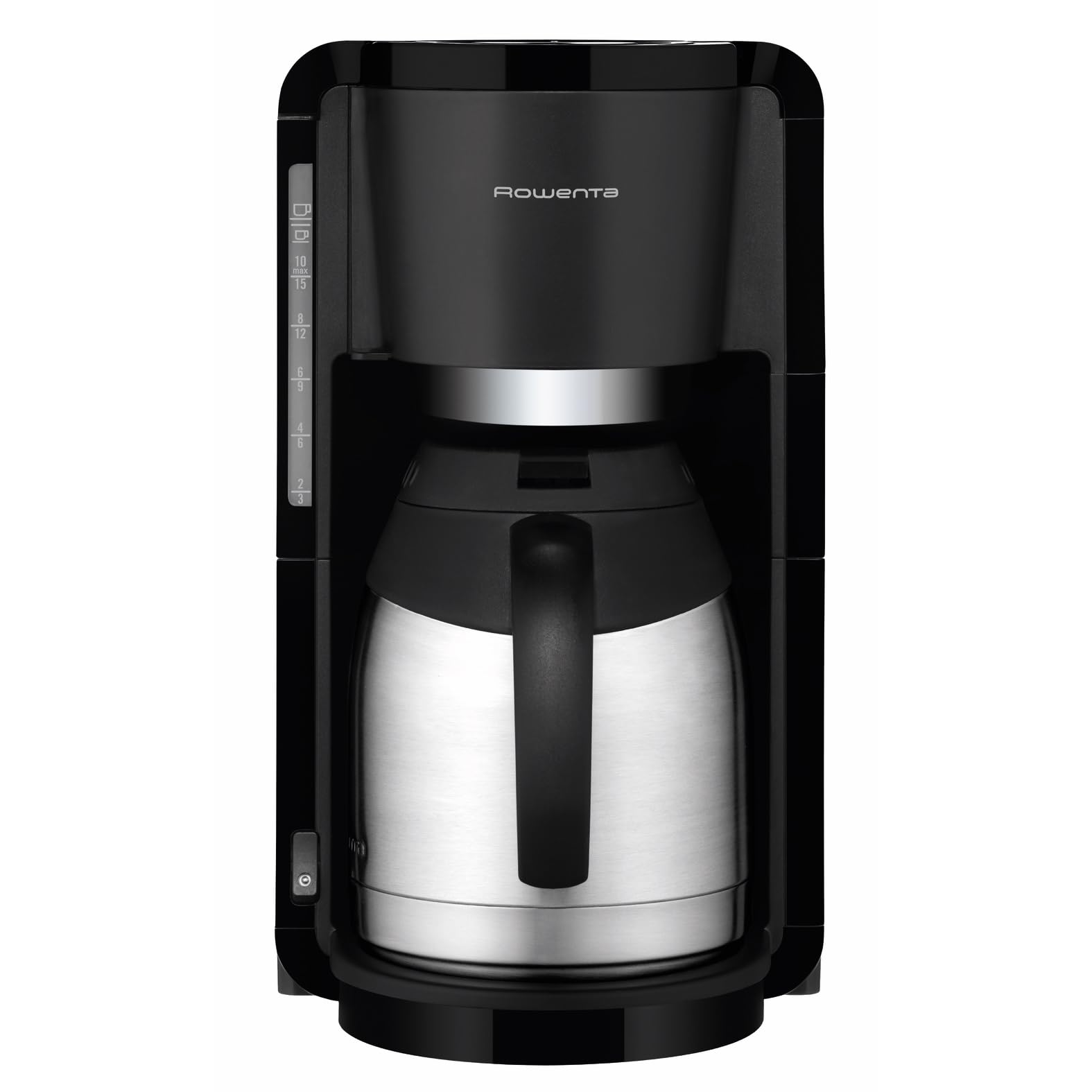 Rowenta Filter coffee machine Adagio, stainless steel thermos jug, keeps coffee warm for up to 4 hours, brews 10-15 cups, capacity 1.25 L, removable filter holder, automatic shut-off, Black, CT3818