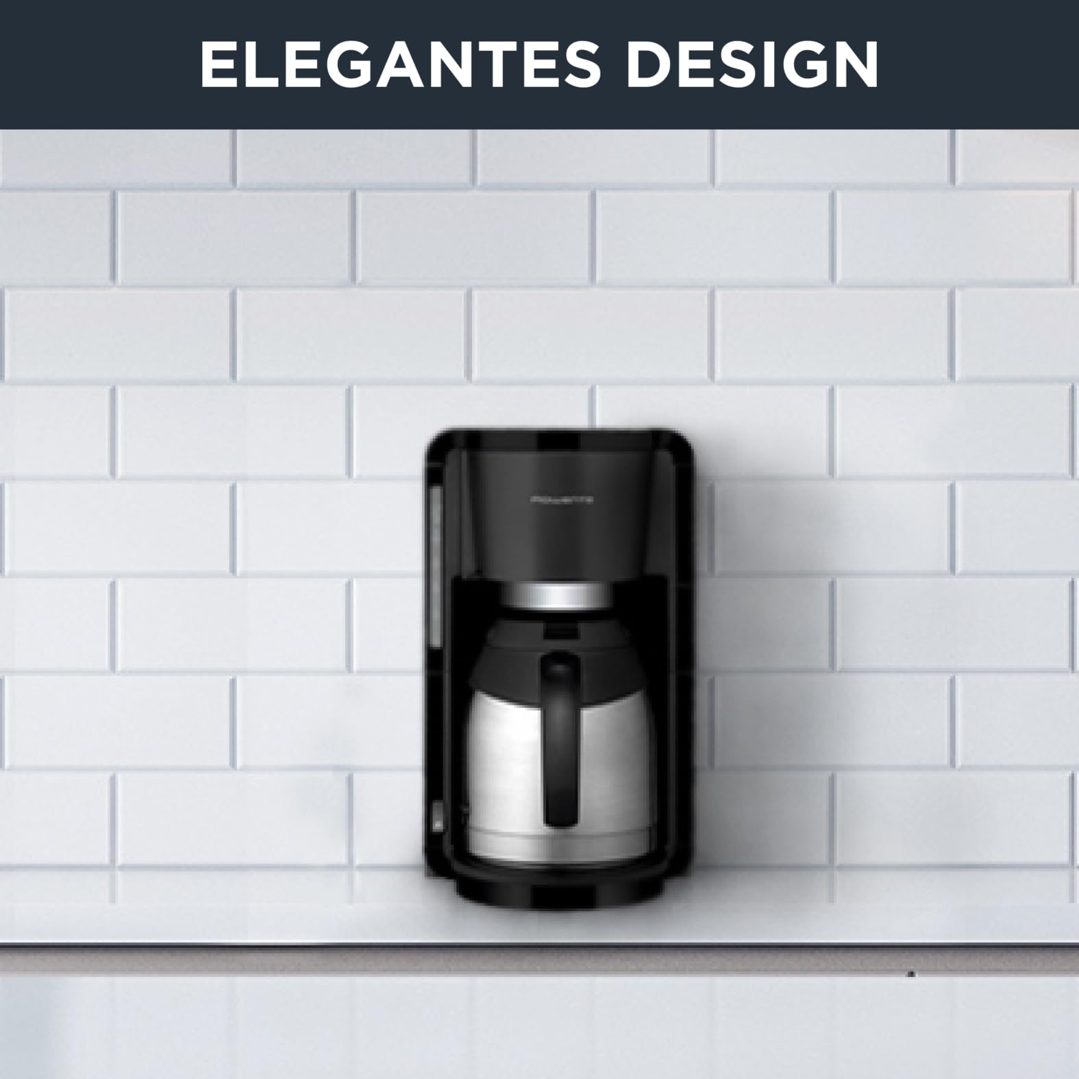 ["Elegant Aesthetic: Matte and glossy finish for a stunning drip coffee maker","Stainless Steel Thermos: Insulated with durable plastic, keeps your coffee warm for up to four hours. On/Off Indicator: Illuminated on/off button","High Capacity: 1.25 L capacity for 10 to 15 cups of delicious coffee","Automatic Shut-off: Coffee maker automatically shuts off at the end of brewing","Removable Filter Basket: Swiveling removable filter basket makes filling and cleaning a breeze"]
