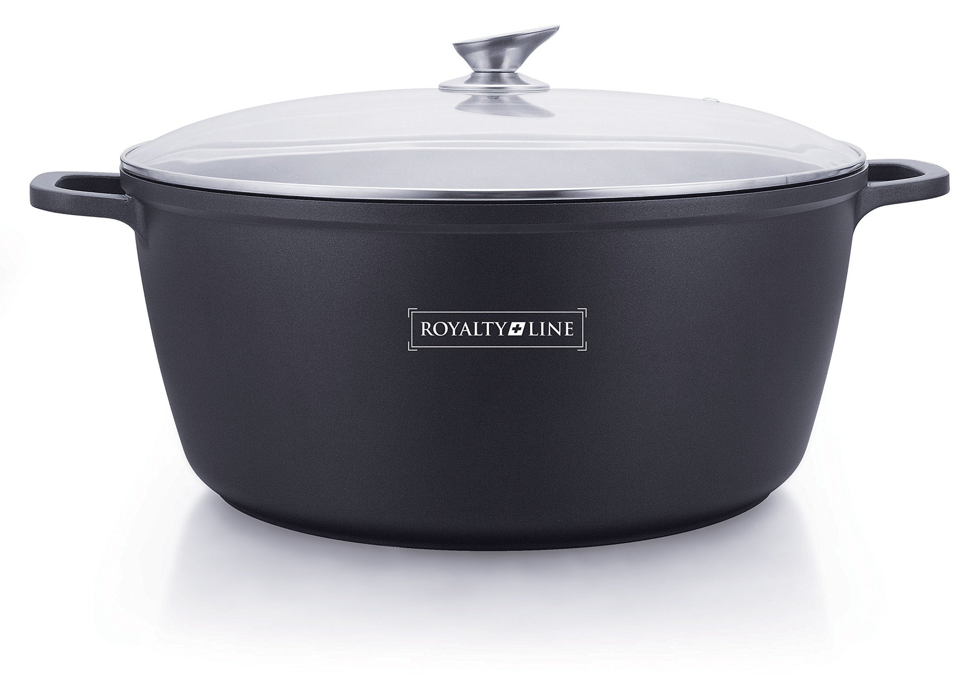 ROYALTY LINE, 32 cm aluminum pot, non-stick Greblon coated in marble, silicone handles, compatible with gas, electric, ceramic, halogen, induction - marble, 32 cm, grey