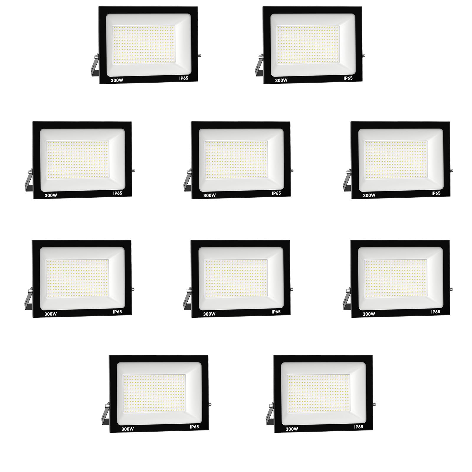 Royana 10-pack 300W LED floodlight outdoor 30000LM super bright LED floodlight 6000K cold white IP65 waterproof LED spotlight, ultra-thin for sports field garage garden backyard hallway
