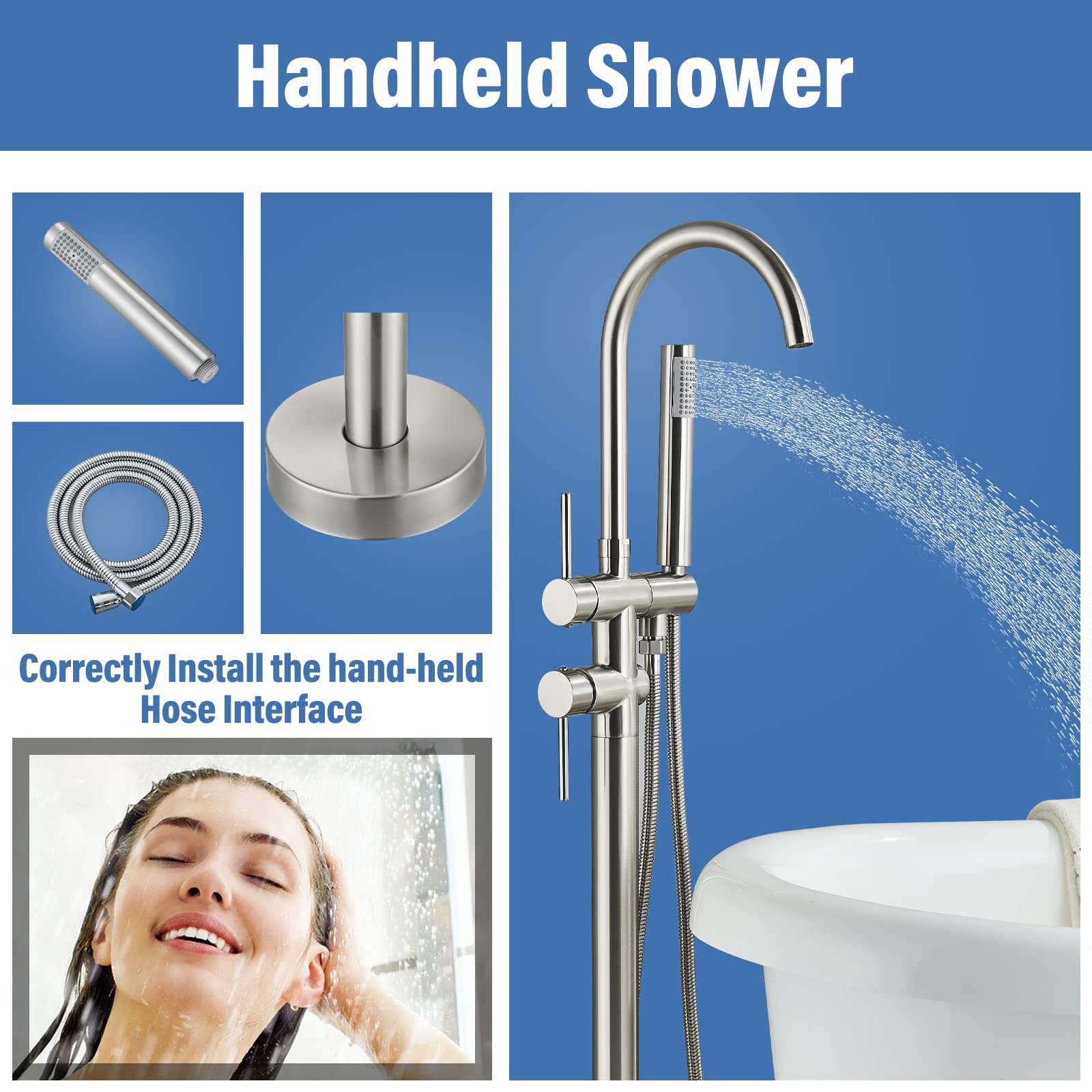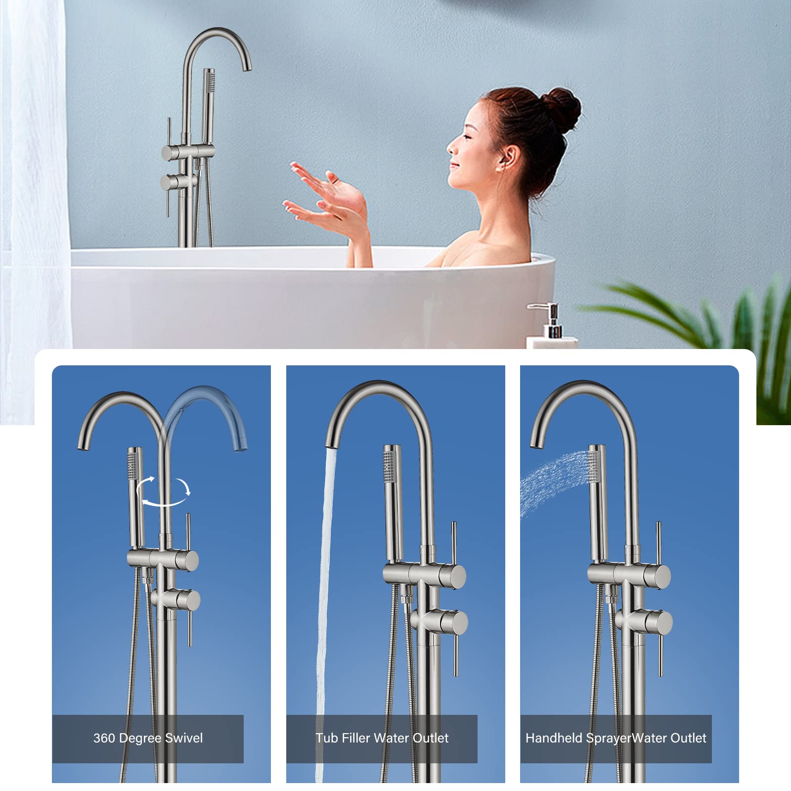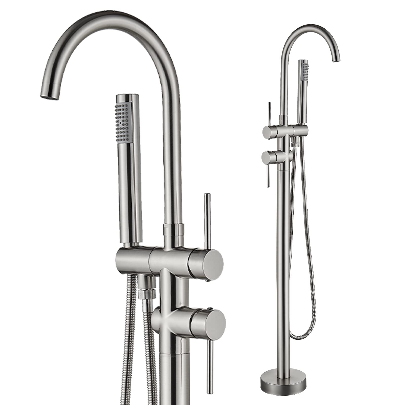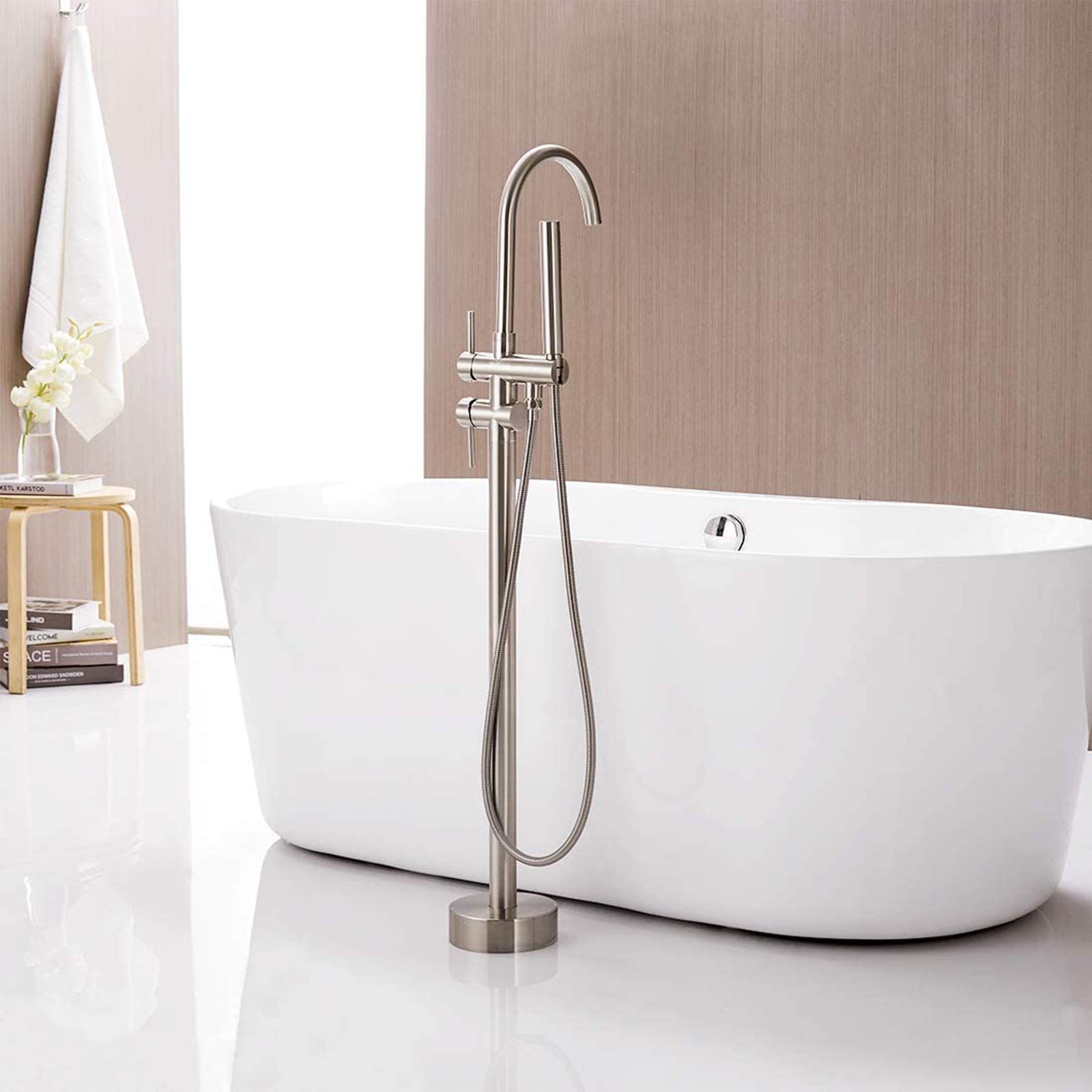 Rozin Freestanding Bathtub Faucet Brushed Nickel Brass Two Handles 360° Rotatable Spout with Hand Shower 150cm Hose Bathroom Tub Faucets