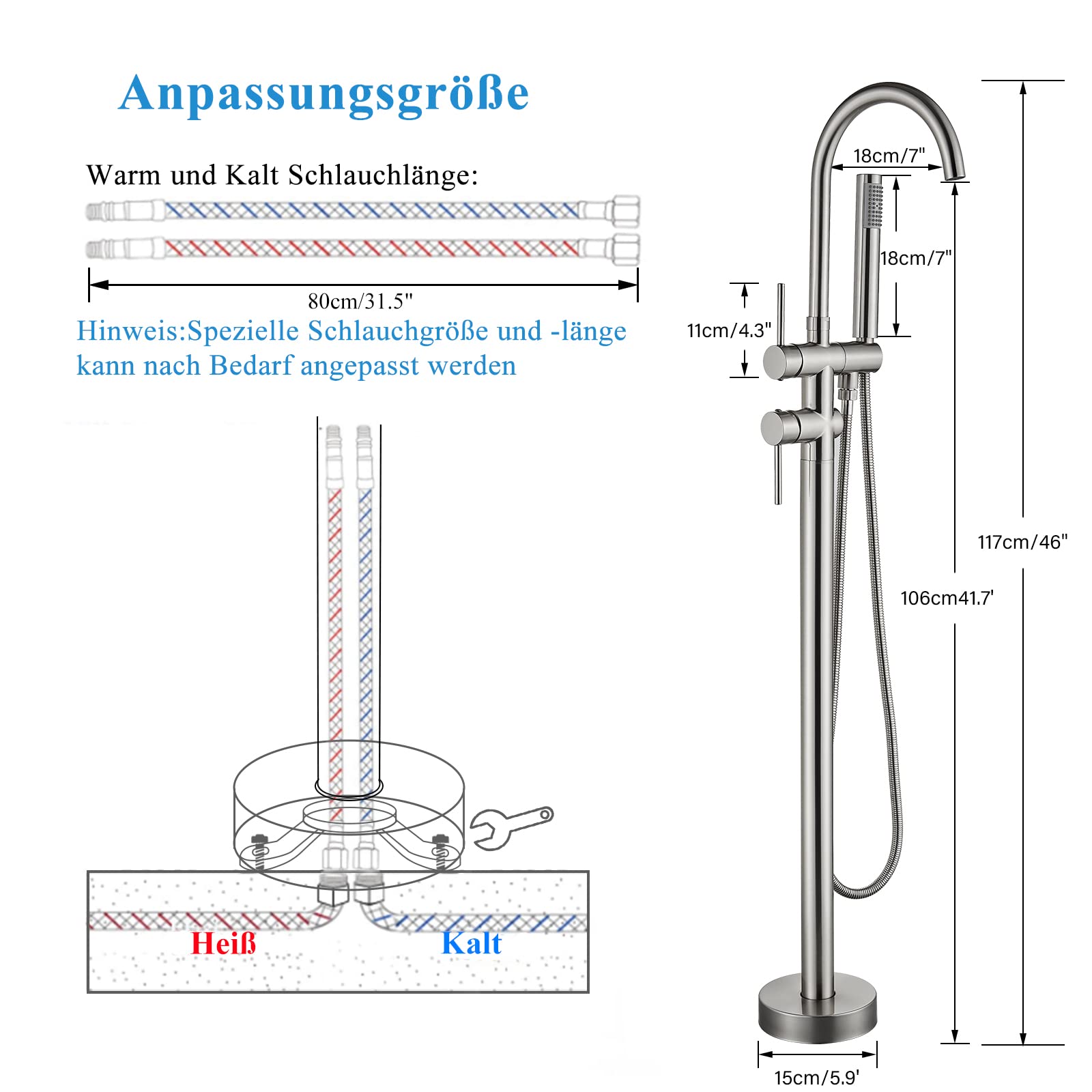 ["❤ High quality: Made of solid brass with Sedal ceramic valve for durability and reliability. Color: Brushed nickel","❤ Multifunctional: 360° swivel spout for quick filling of the bathtub. Hand shower with 59" shower hose for rinsing after bathing or washing the bathroom. With diverter switch between tub spout and hand shower.","❤ Feature: With 3/8 inch standard shower hose connection, integrated hand shower faucet accessory, and 150 cm long shower hose. The noise-tested LGA mixing nozzle and durable filter element ensure quiet and reliable operation.","❤ Installation: The included mounting kit, fastening materials, base plate, and flexible hoses, along with easy-to-understand installation instructions, allow for easy installation.","❤❤ Service and Warranty】 5 years warranty service, for any questions please send an email to the seller (Super Water), the seller will assist until the problem is resolved. The seller of the brand ROZIN is Super Water, please look for the name of the real seller. Other sellers are unreliable."]