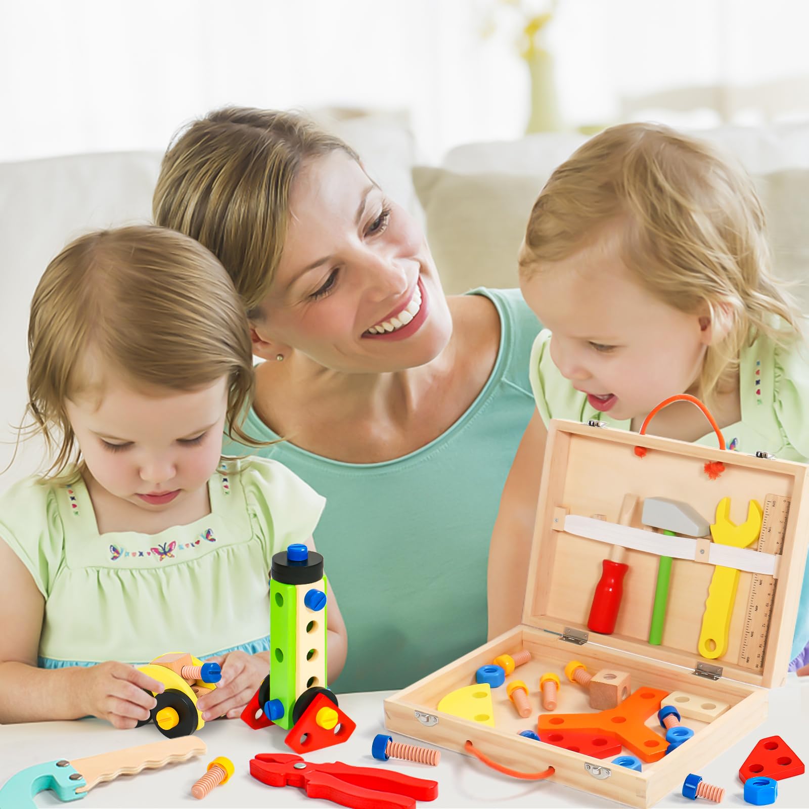 "Gift for 3 Year Old Boy - Tool toys from 4 years old for boys and girls are made of safe and high-quality wood, durable, with smooth surface of accessories and rounded design, providing children with a safe and fun experience. Suitable as Halloween favors, Christmas gifts, birthday gifts for kids boys and girls 3-6 years old.",
