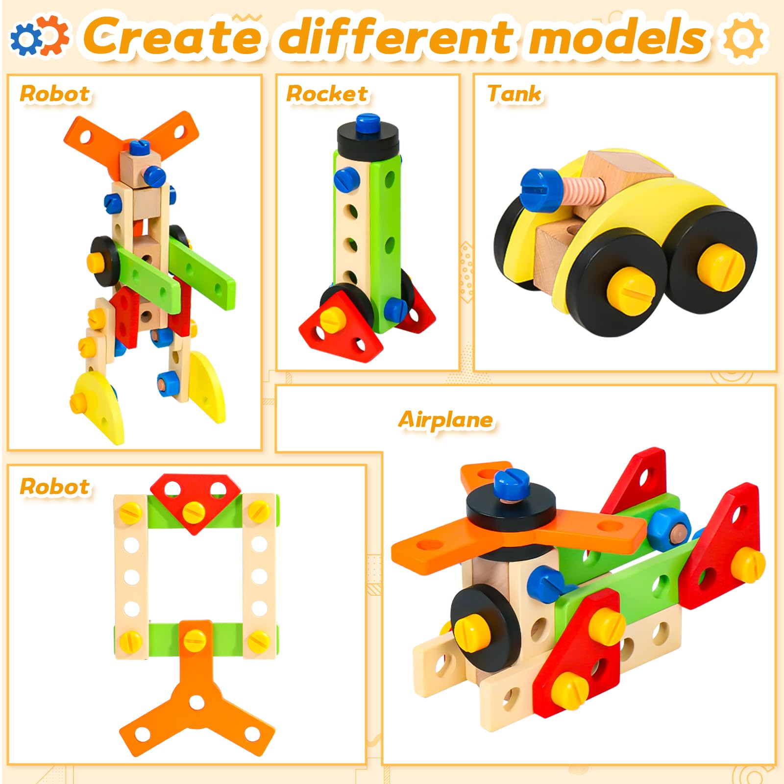 "Inspire Creativity in Kids with Tools - Children's games from 2 years old learning toys are equipped with instructions. Boys can create beautiful 3D puzzle models of airplanes, trucks, rockets, etc. Additional accessories are added to allow children to exercise their creativity and imagination and create various beautiful crafts through DIY."]