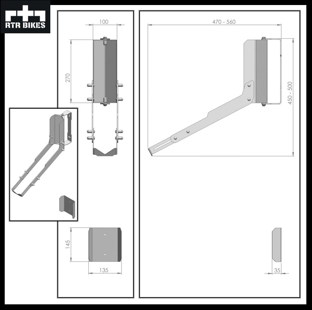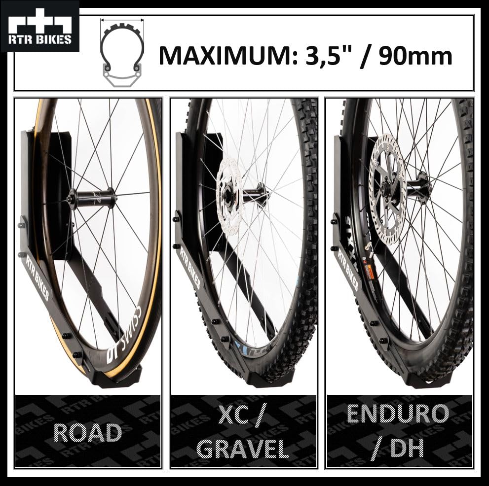 ["PROFESSIONAL: The KRANKED TWIST wall mount from RTR BIKES for hanging a bike by the front wheel is the perfect choice for discerning cyclists who value high quality and convenience. Precise workmanship, modern design will not disappoint even the most demanding customers.","SPACE SAVING: Thanks to the option to hang the bike on the wall, you will have free space in your apartment or garage. The hanger is rotatable, with a 180 degree turning radius, allowing you to save additional space.","UNIVERSAL: Suitable for bicycles with tire diameters from 24 to 29 inches and up to 3.5 inches wide. You can easily hang a bike weighing up to 30 kg on it.","NO LIFTING: To hang the bike, simply place it on the rear wheel and roll the front wheel onto a specially profiled, adjustable element.","COMPLETE SET: The set includes a wall mount - 1 piece, a wheel tray - 1 piece, a set of expansion screws with Fischer screws."]